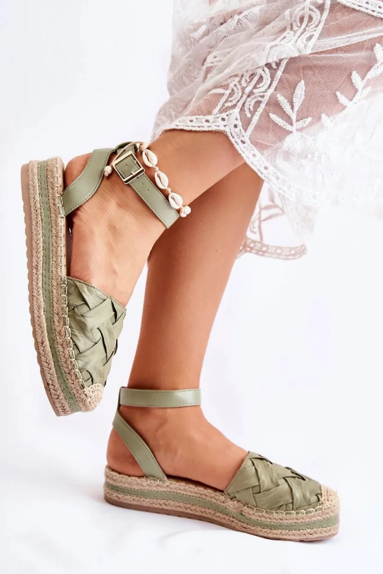 Espadryle na platformie zostały przyozdobione plecionką z juty z dodatkowym eko skórzanym paskiem. Wykonane z połączenia materiału tekstylnego oraz eko skóry. Zapinane wokół kostki na sprzączkę z regulowanym paskiem. Model z zakrytym noskiem i odsłoniętą piętą. Podeszwa wykonana z gumowego tworzywa, antypoślizgowa. Świetnie sprawdzą się w stylizacjach boho.Przy wyborze rozmiaru prosimy sugerować się tabelą rozmiarów.