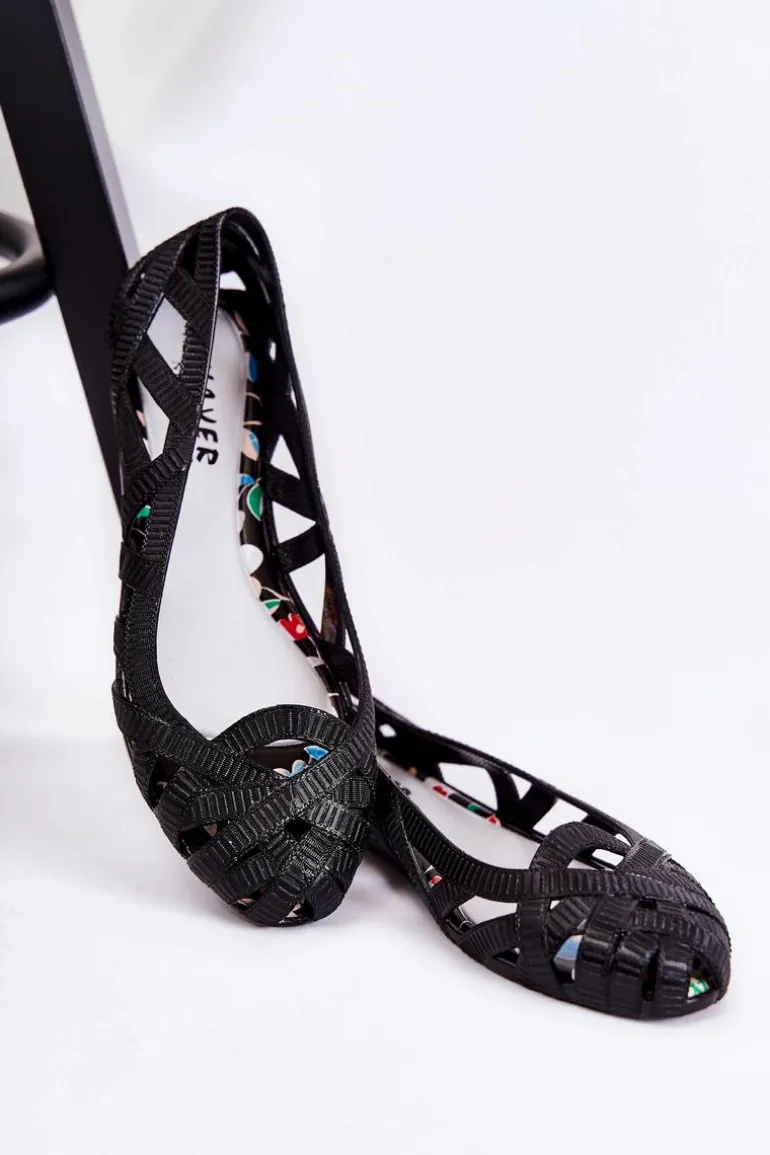 Cudowne baleriny zostały wykonane z gumowego tworzywa. Ozdobny fason z przeplatających się pasków. Baleriny osadzone są na płaskim obcasie z antypoślizgową podeszwą. Nosek w kształcie migdała. Wkładka jest miękka, dzięki której komfort użytkowania jest wysoki. Te baleriny świetnie sprawdzą się w upalne dni! Przy wyborze rozmiaru prosimy sugerować się tabelą rozmiarów.