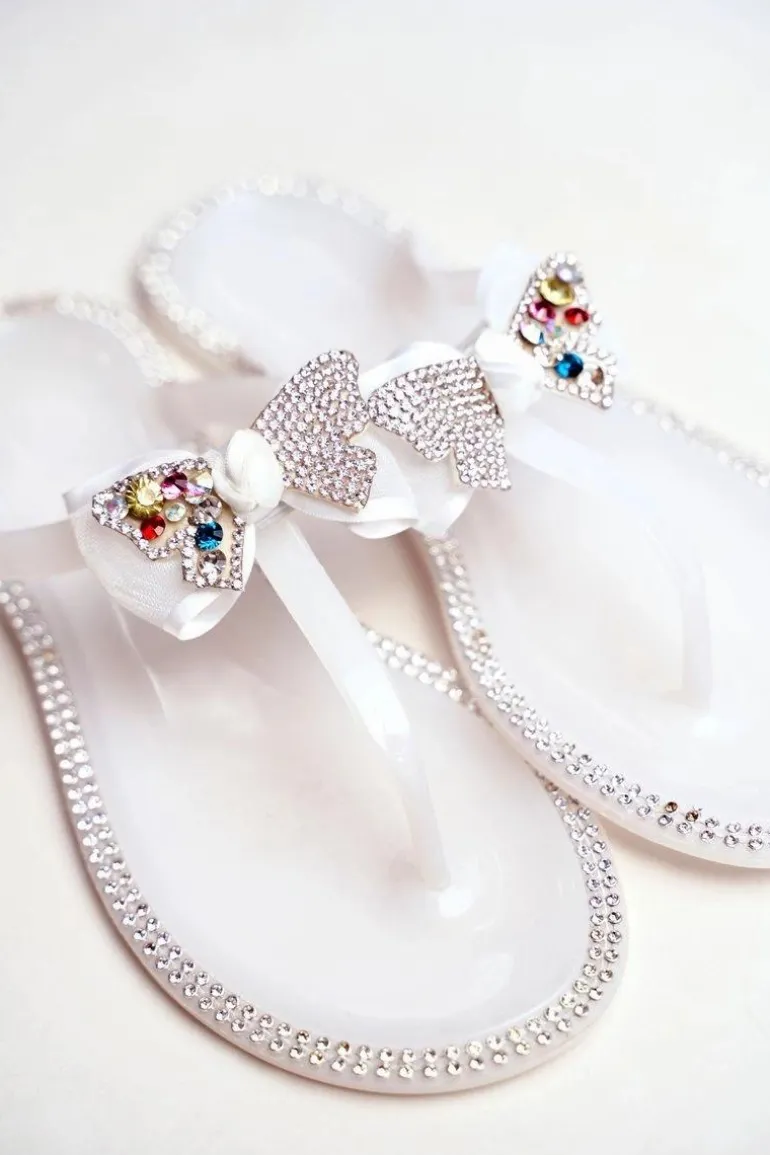 Damskie Gumowe Klapki Białe Japonki Cyrkonie Lissy