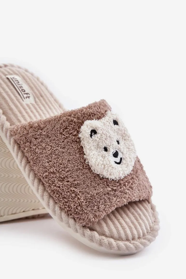 Przytulne kapcie na płaskiej, gumowej podeszwie to idealny wybór na chłodniejsze dni. Wykonane z miękkiego, sztucznego futerka zapewniają ciepło i wygodę. Z przodu kapci znajduje się urocza naszywka. Noski otwarte. Doskonałe na relaks w domowym zaciszu! Przy wyborze rozmiaru prosimy kierować się tabelą rozmiarów.