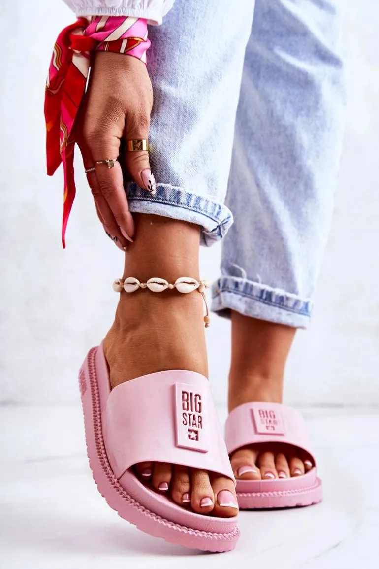 Klapki marki Big Star sprawdzą się zarówno na zewnątrz, jak i zamiast papci po domu. Osadzone na masywnej platformie wykonanej z gumowego tworzywa. Profilowana wkładka zapewni komfort podczas użytkowania. Tłoczone logo marki Big Star na przodzie i wkładce. Świetny model, który powinnaś mieć w swojej szafie. Możesz wykorzystać ten model w wielu sytuacjach: podczas wyjścia na basen czy spacer po piaszczystej plaży. Koniecznie sprawdź także pozostałe modele klapek marki Big Star dostępne w naszej ofercie!