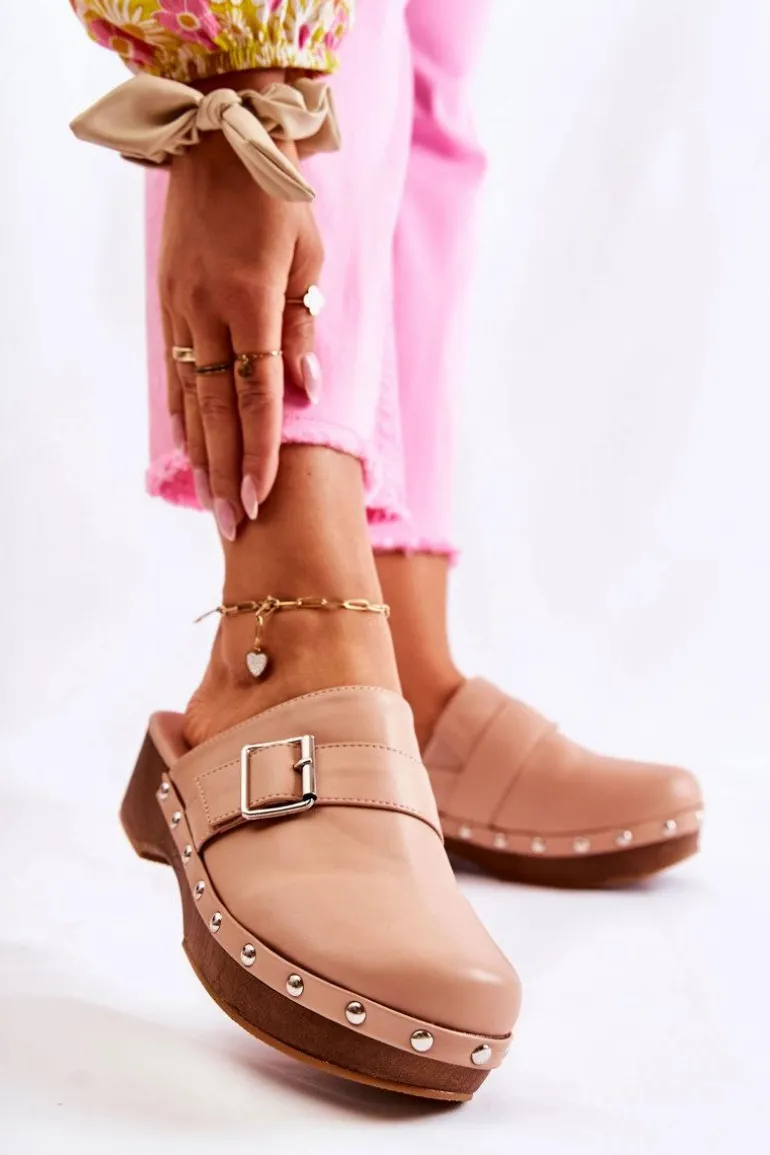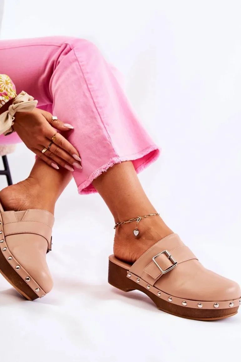Damskie Klapki Chodaki Na Obcasie Beżowe Ivette