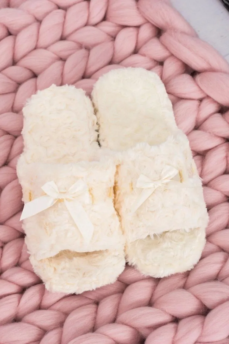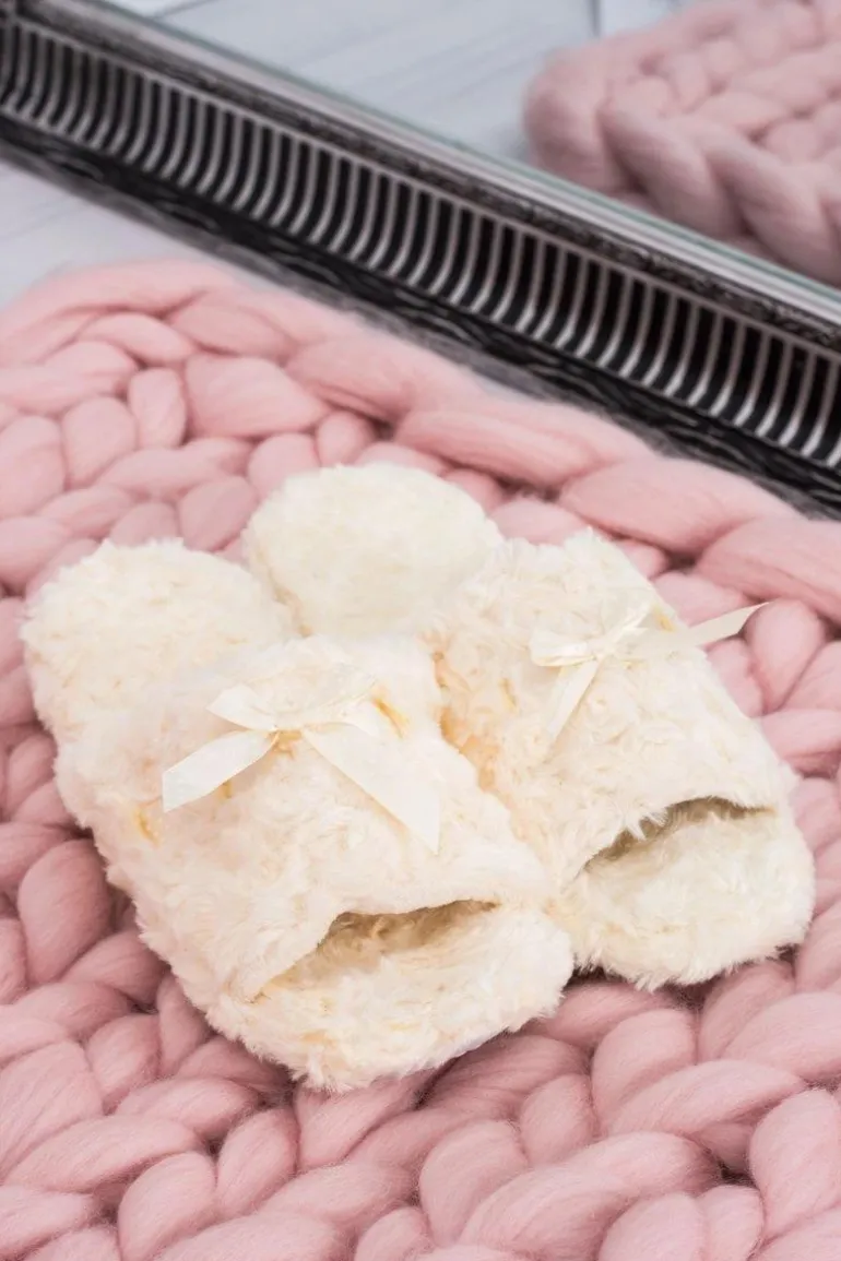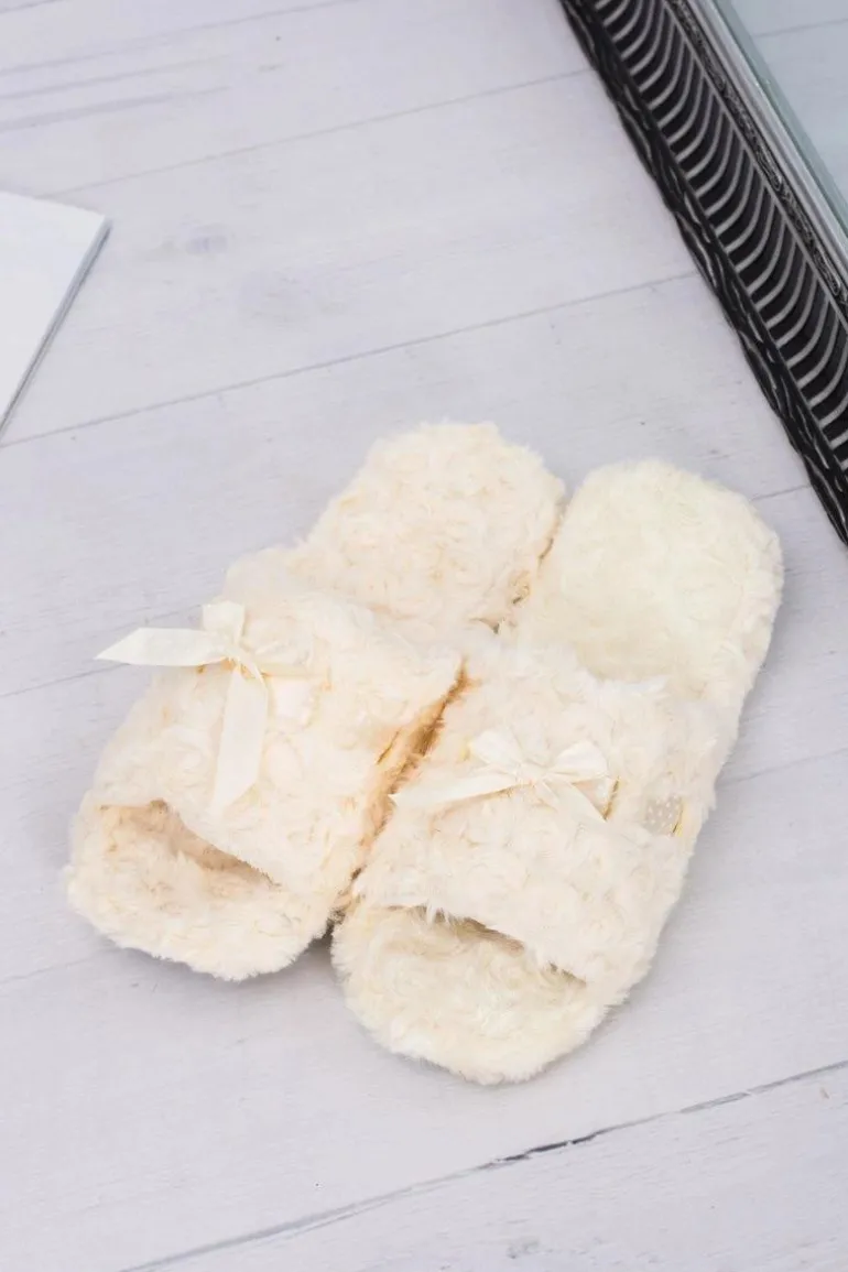 Damskie Klapki Domowe Beżowe Papcie ze Wstążką