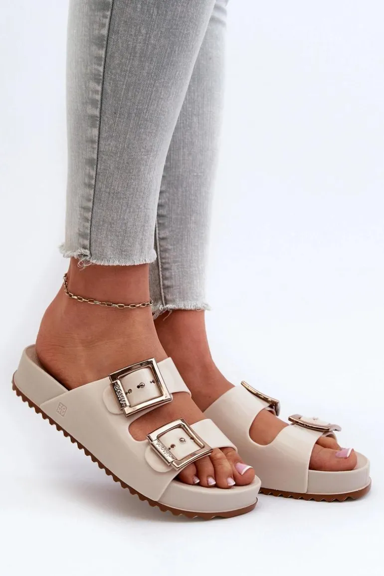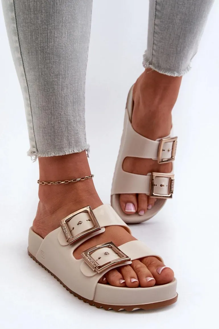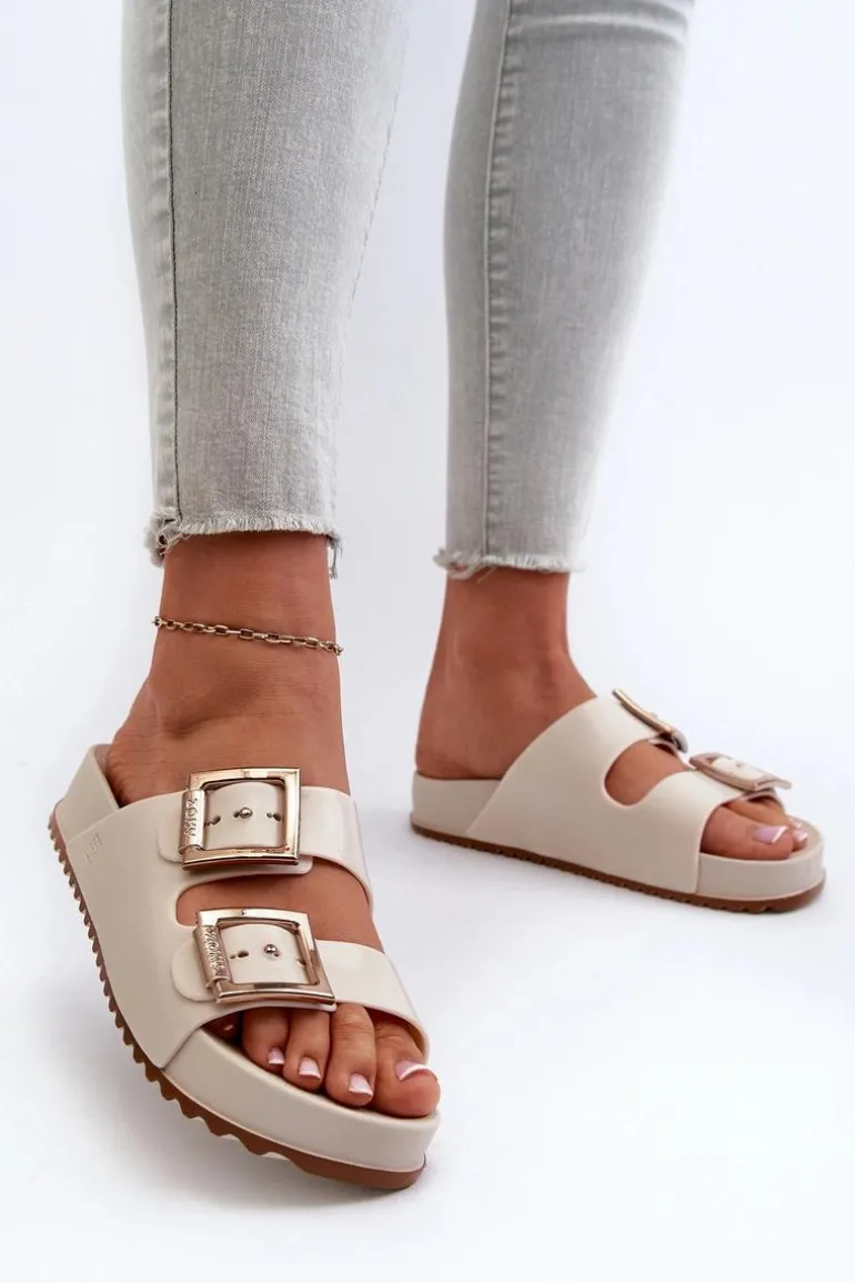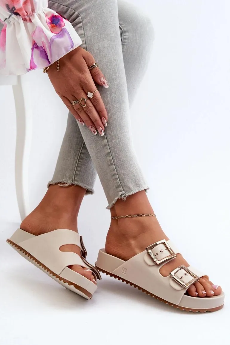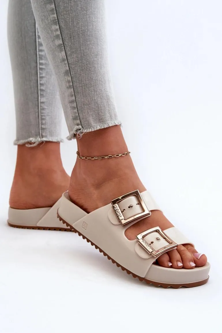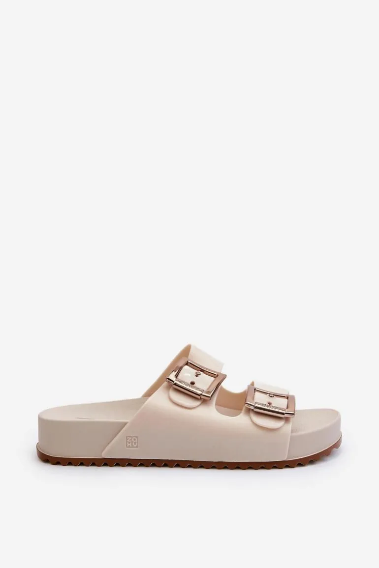 Damskie Klapki Gładkie ZAXY NN285058 Jasnobeżowe