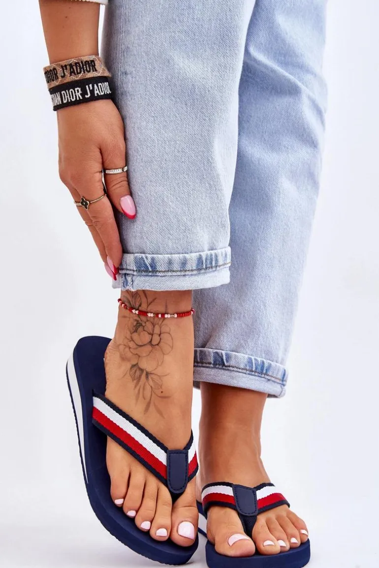 Damskie Klapki Japonki Na Platformie Big Star LL274779 Granatowe