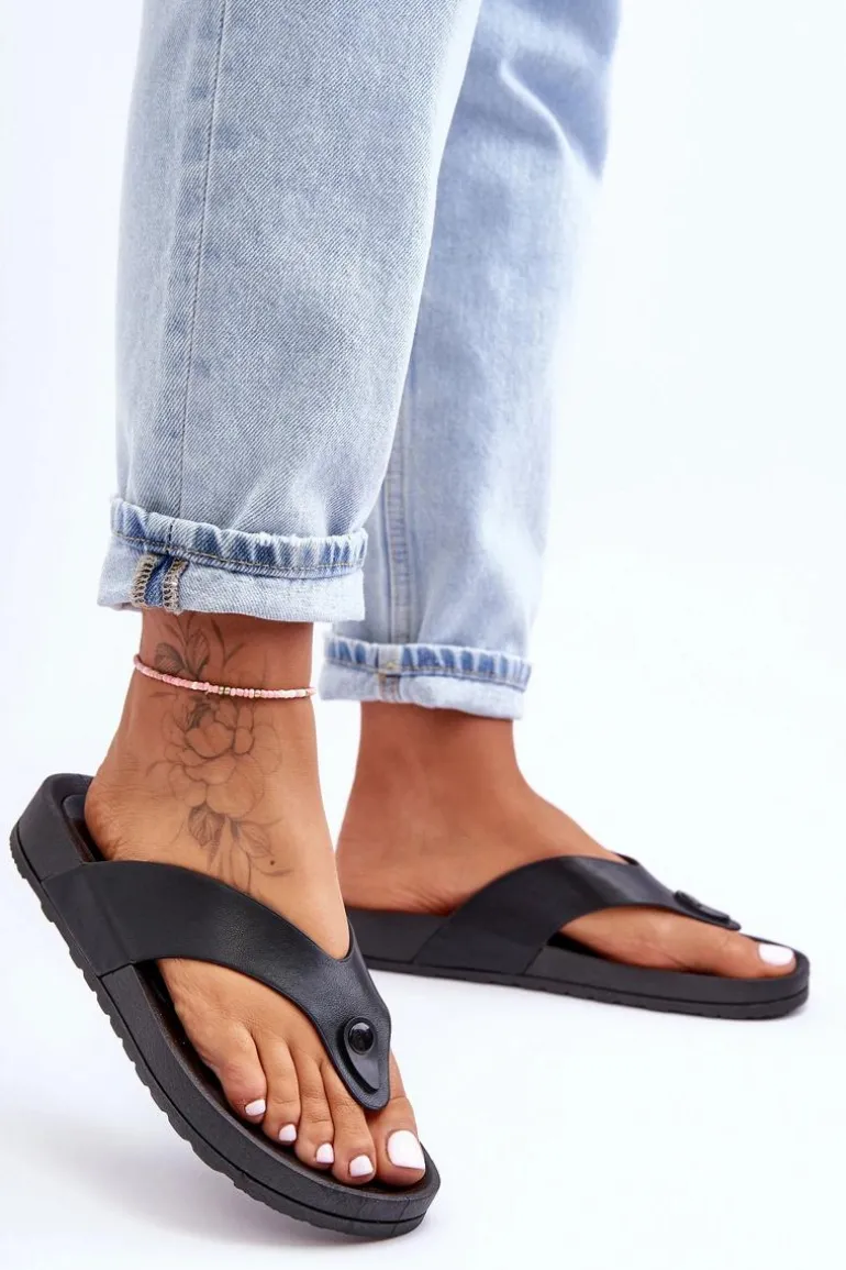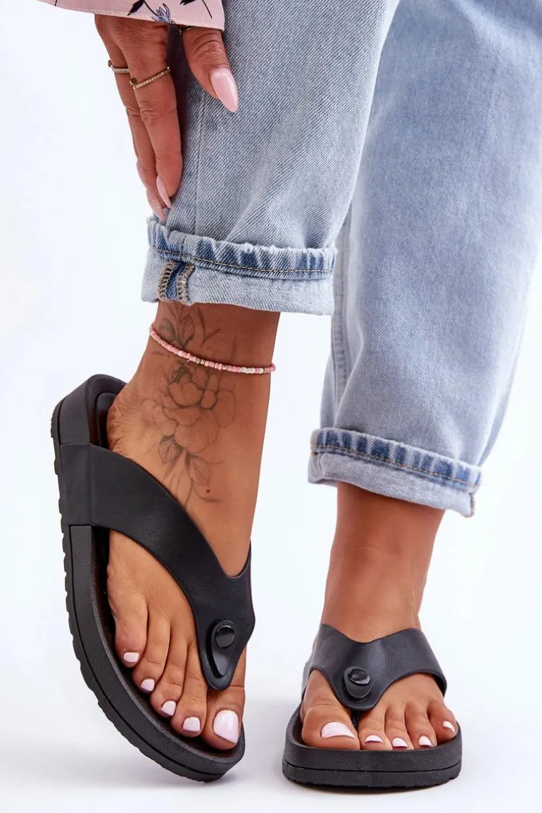 Damskie Klapki Japonki Na Platformie Czarne Bellitta