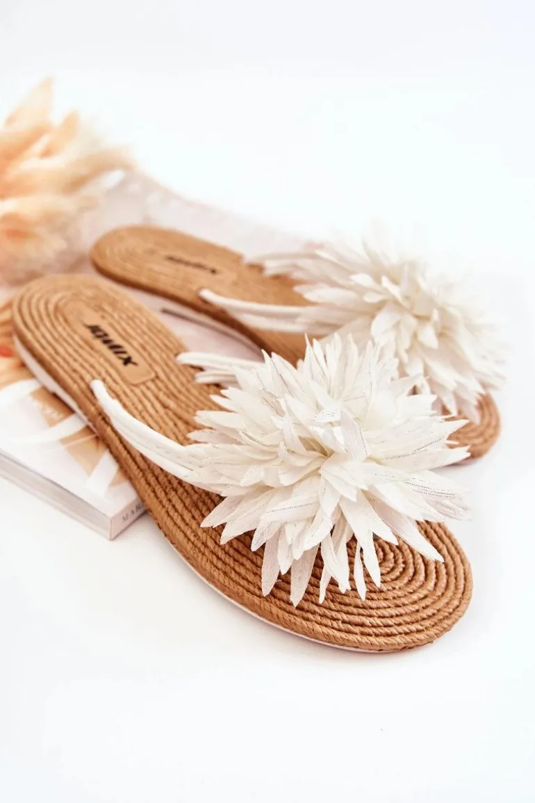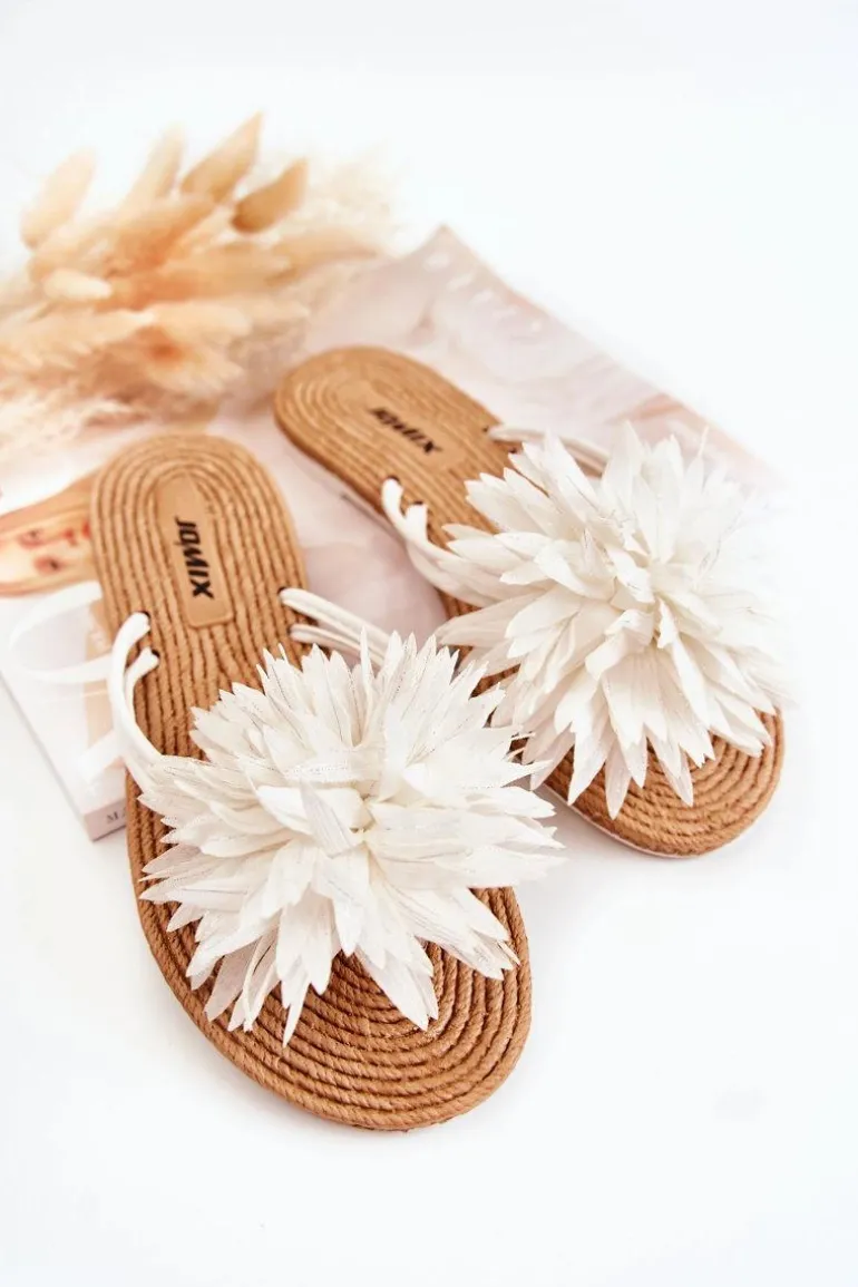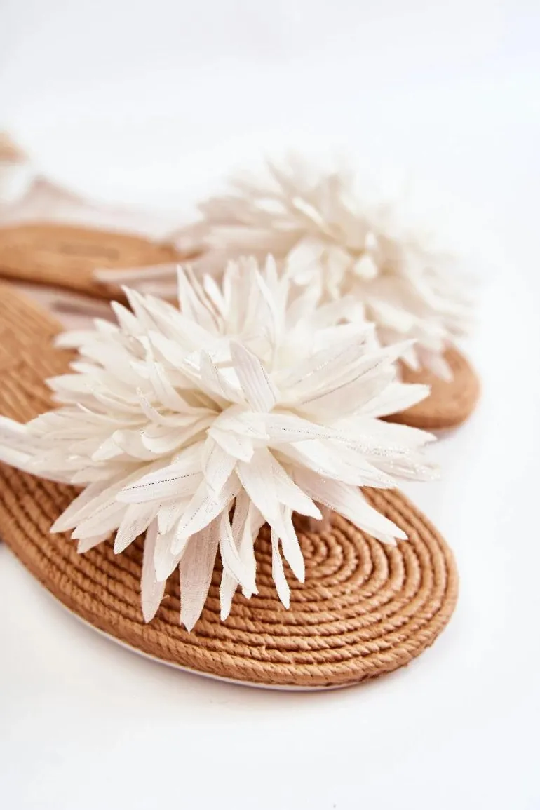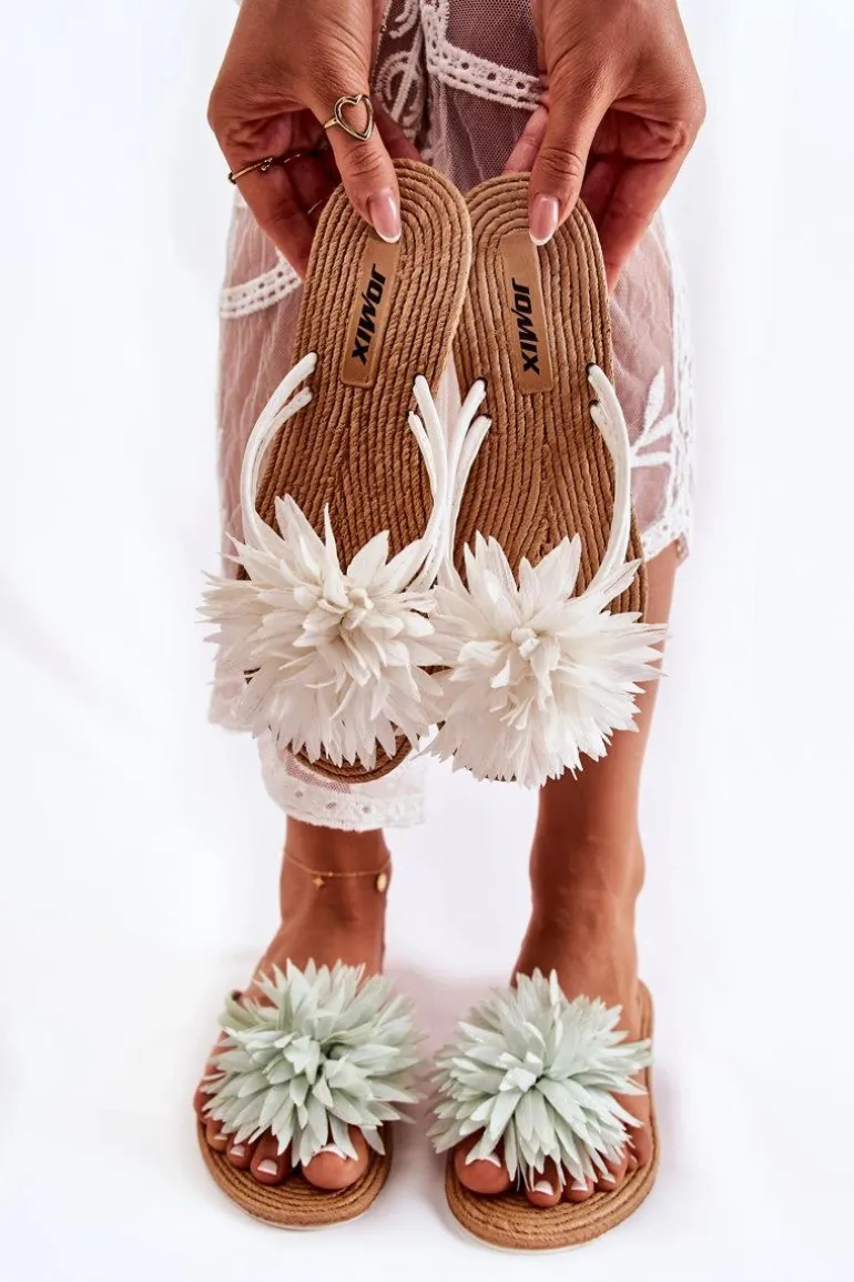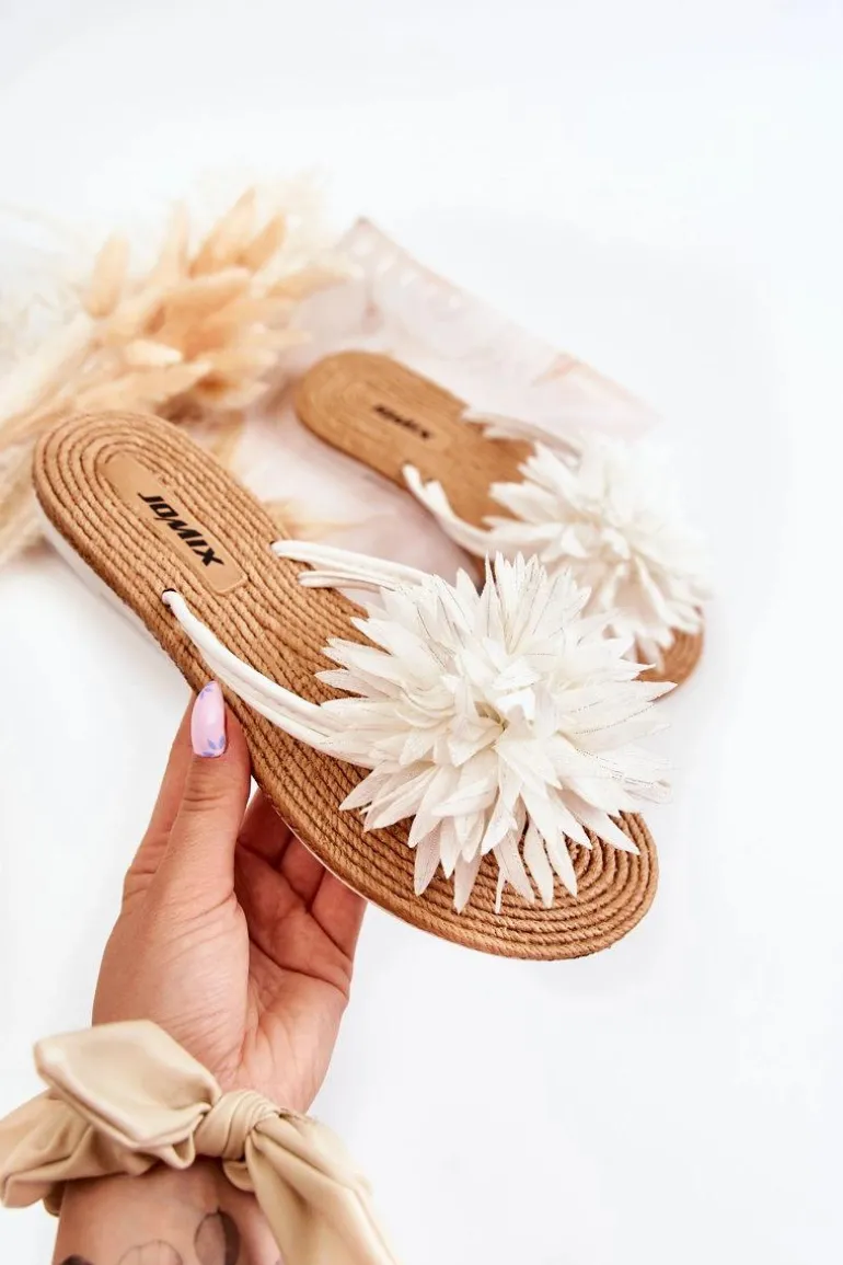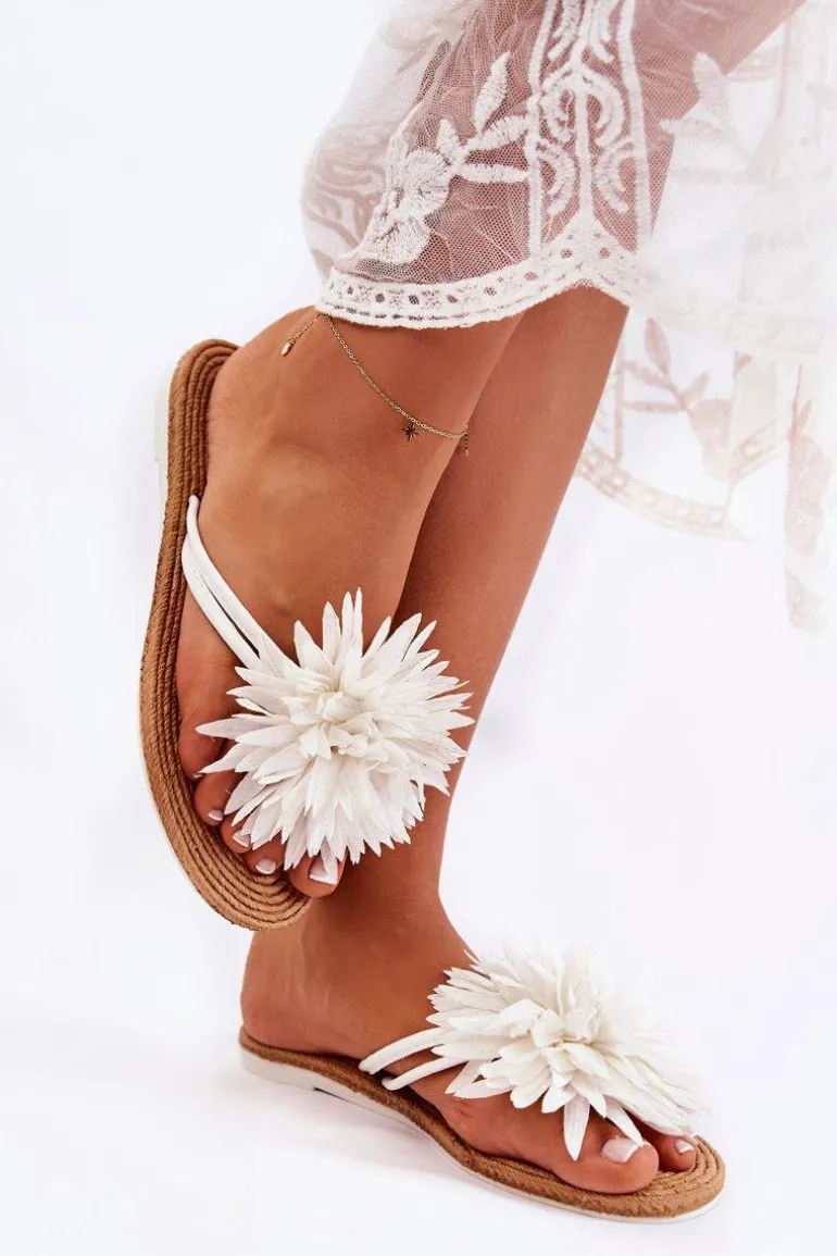 Damskie Klapki Japonki Z Materiałową Ozdobą Białe Eviana