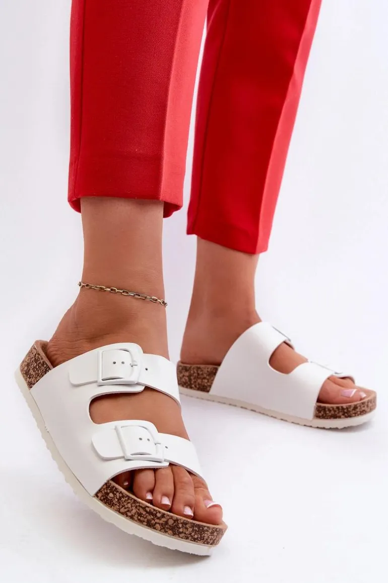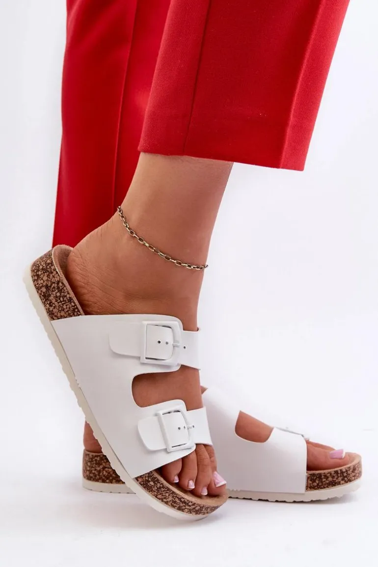 Klapki damskie na korkowej platformie, które łączą w sobie modę i wygodę. Z przodu znajdują się dwa regulowane paski, co zapewnia precyzyjne dopasowanie do stopy. Dodatkowo profilowana wkładka zapewnia komfort. Idealne na letnie dni! Przy wyborze rozmiaru prosimy sugerować się tabelą rozmiarów.