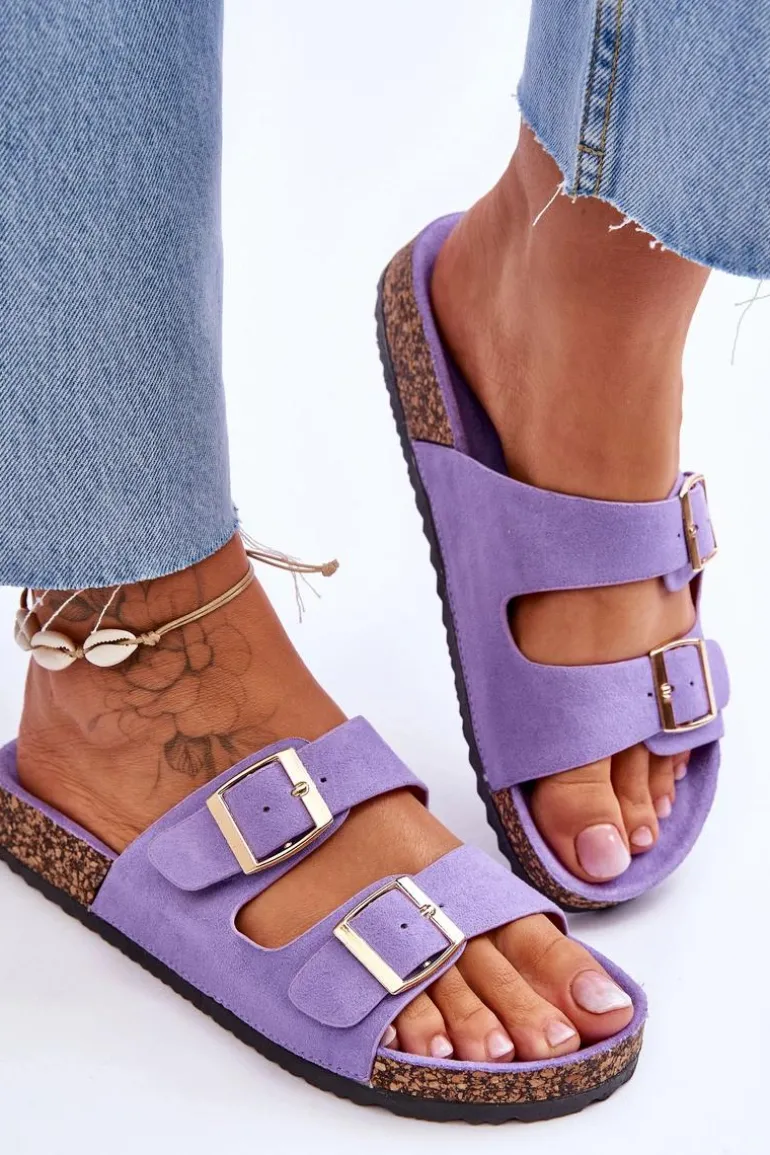 Damskie klapki zostały wykonane z miłego w dotyku eko zamszu. Posiadają ozdobne klamry z regulowanymi paskami. Model ten został osadzony na korkowej platformie. Idealne obuwie na letni sezon. Klapki te posiadają profilowaną, wygodną wkładkę. Koniecznie powinnaś je mieć! Przy wyborze rozmiaru prosimy sugerować się tabelą rozmiarów.