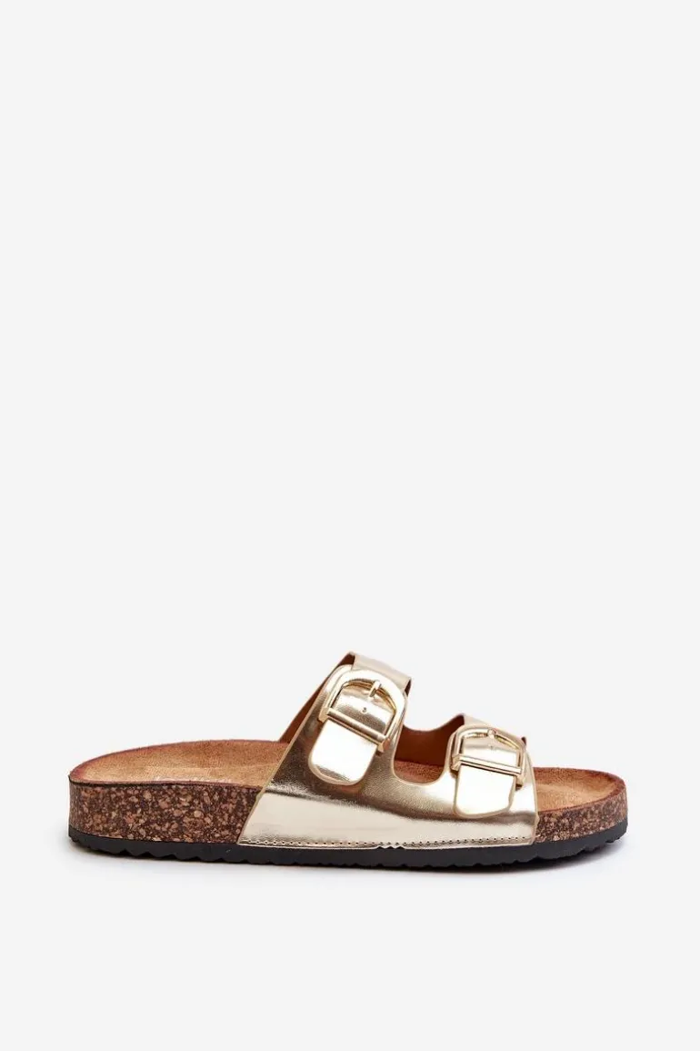 Damskie klapki zostały wykonane z eko skóry. Posiadają ozdobne klamry z regulowanymi paskami. Model ten został osadzony na korkowej platformie. Idealne obuwie na letni sezon. Klapki te posiadają profilowaną, wygodną wkładkę. Koniecznie powinnaś je mieć! Przy wyborze rozmiaru prosimy sugerować się tabelą rozmiarów.