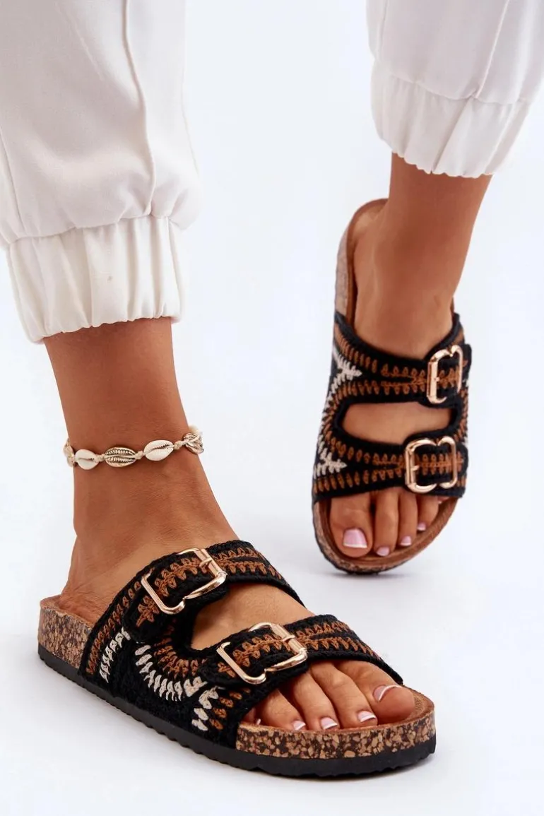 Wyjątkowe klapki damskie wykonane osadzone na korkowej podeszwie. Cholewka ozdobiona klamrami oraz plecionką. Buty posiadają profilowaną wkładkę, która zagwarantuje komfort. Ten modny fason urozmaici Twoje stylizacje! Przy wyborze rozmiaru prosimy sugerować się tabelą rozmiarów.