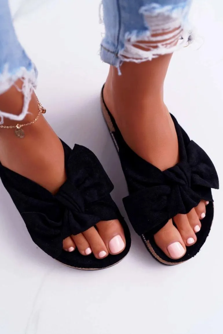 Damskie Klapki Na Korku Kokarda Cyrkonie Czarne Astria