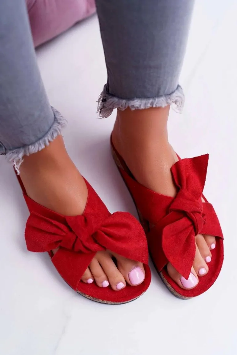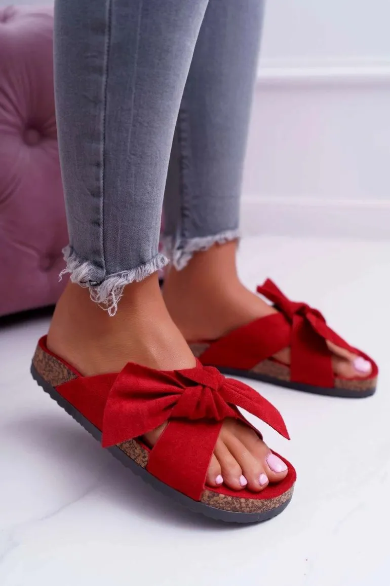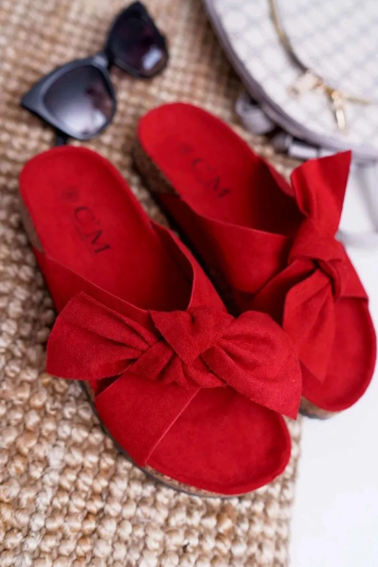 Damskie Klapki Na Korku Kokarda Czerwone Fallen