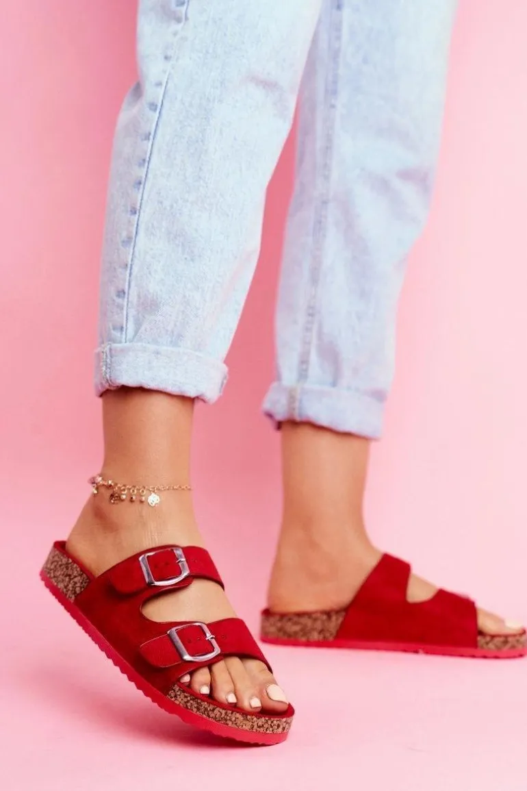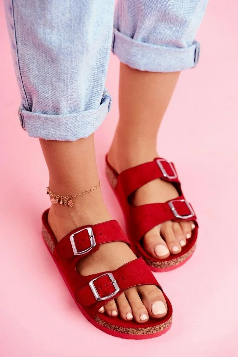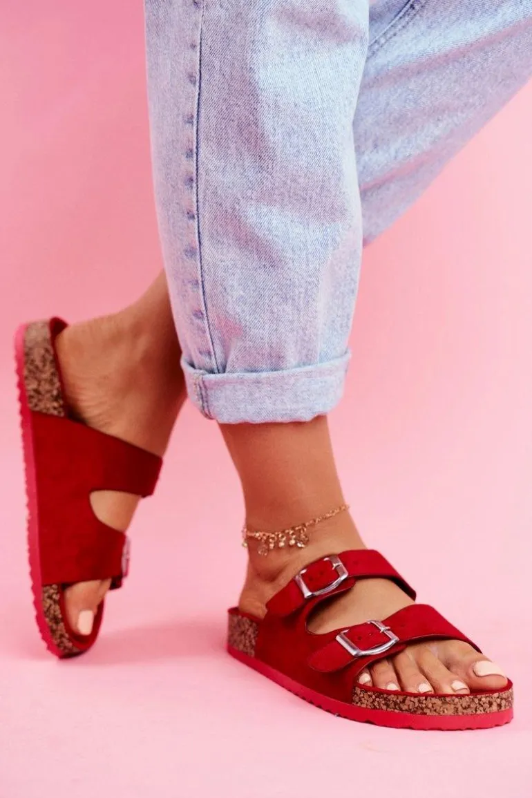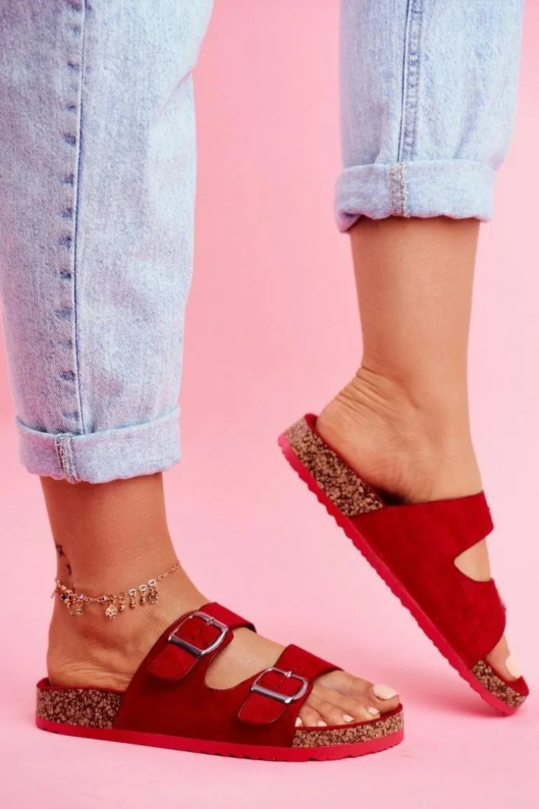 Damskie Klapki Na Korku Z Klamrami Czerwone Si Senor