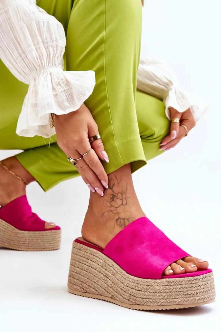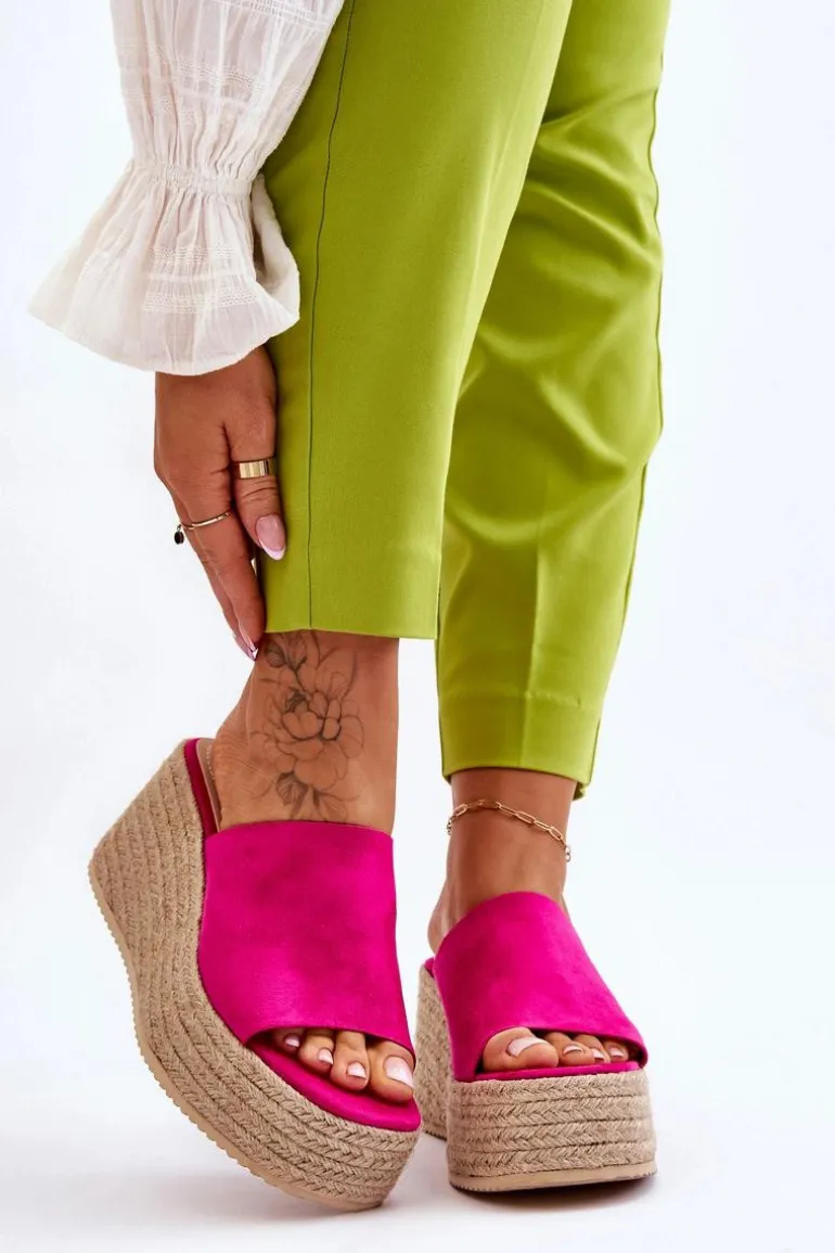 Damskie Klapki Na Koturnie I Platformie Fuksja Ysabel