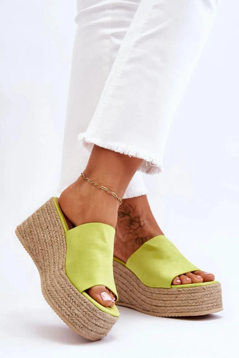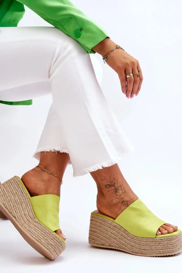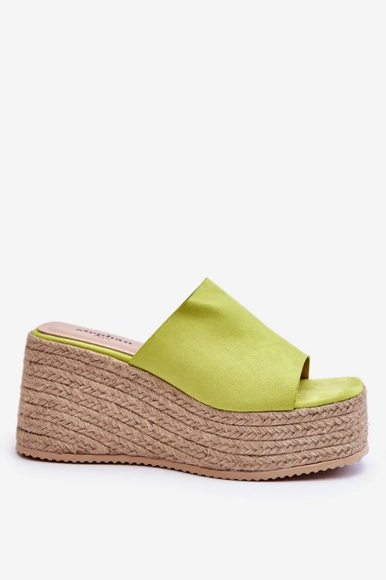 Klasyczne, damskie klapki zostały osadzone na masywnej platformie i koturnie, które dodatkowo zostały ozdobione jutowymi, plecionymi warkoczami. Wykonane z wierzchu z miłego w dotyku eko zamszu. Miękka wkładka została wykonana z eko skóry. Model klasyczny, wsuwany. Te klapki to świetny wybór na letnie, upalne dni! Przy wyborze rozmiaru prosimy sugerować się tabelą rozmiarów.