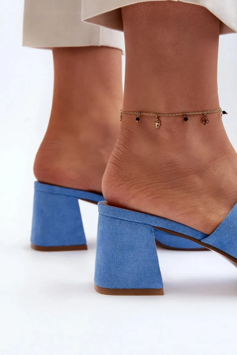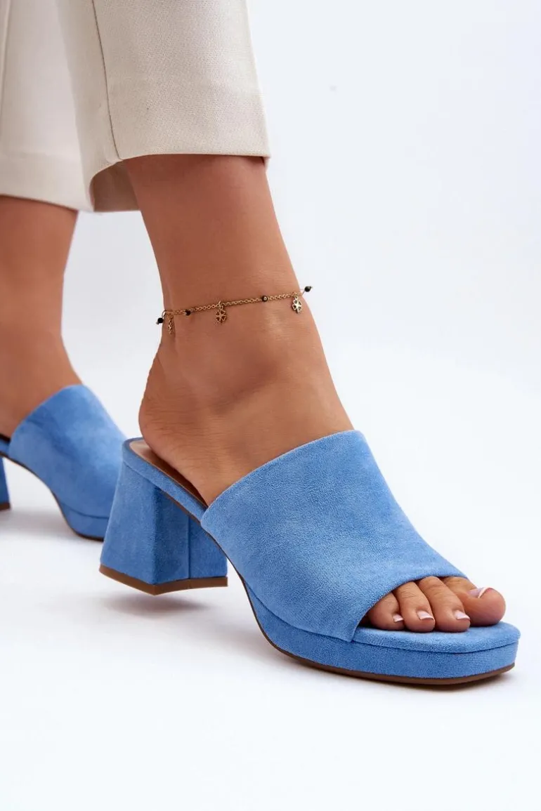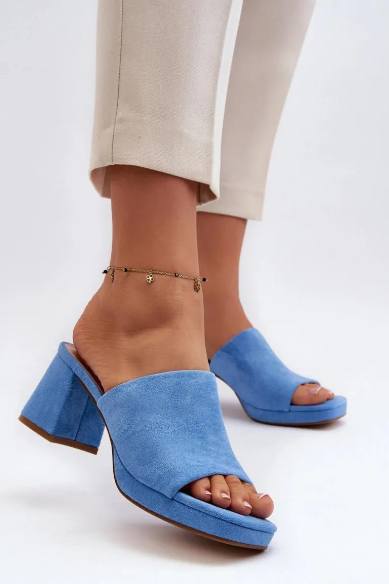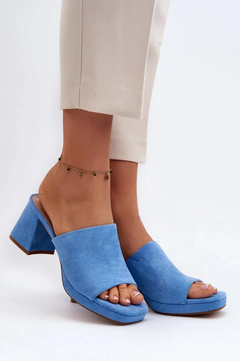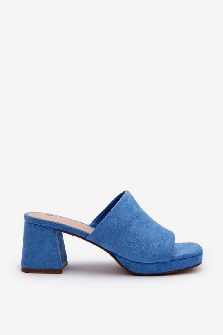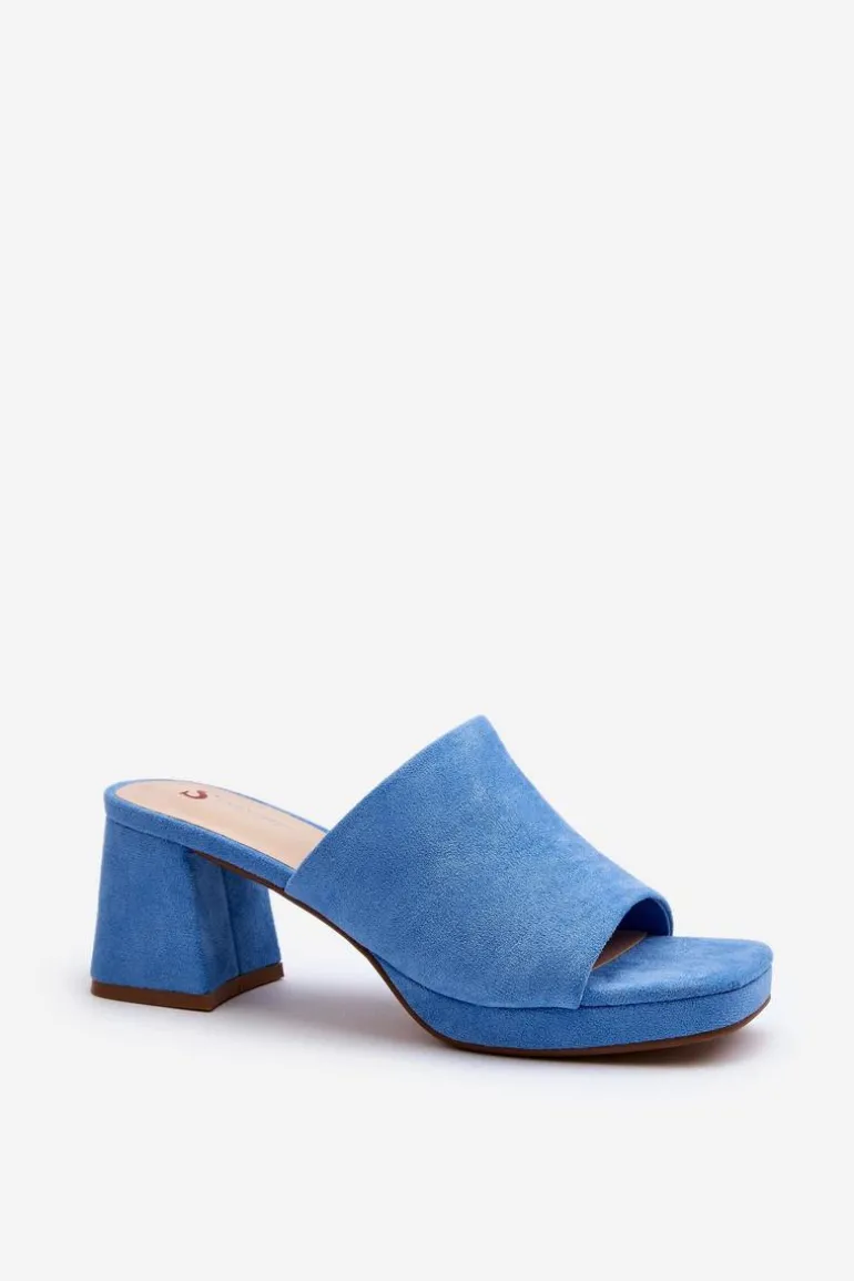 Damskie Klapki Na Obcasie Niebieskie Bralya