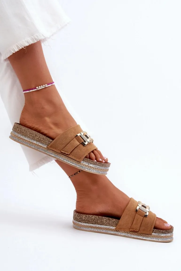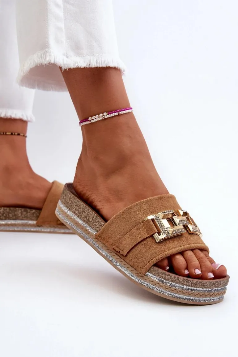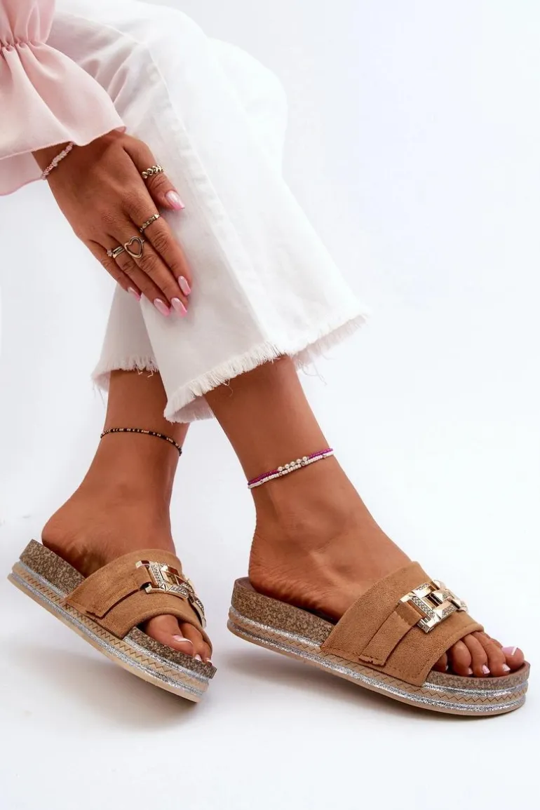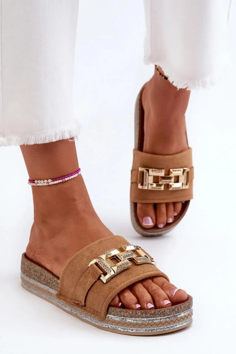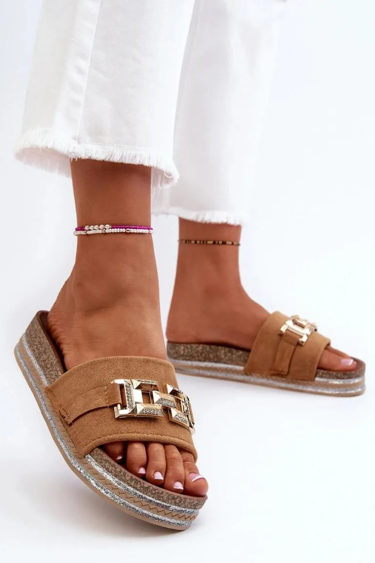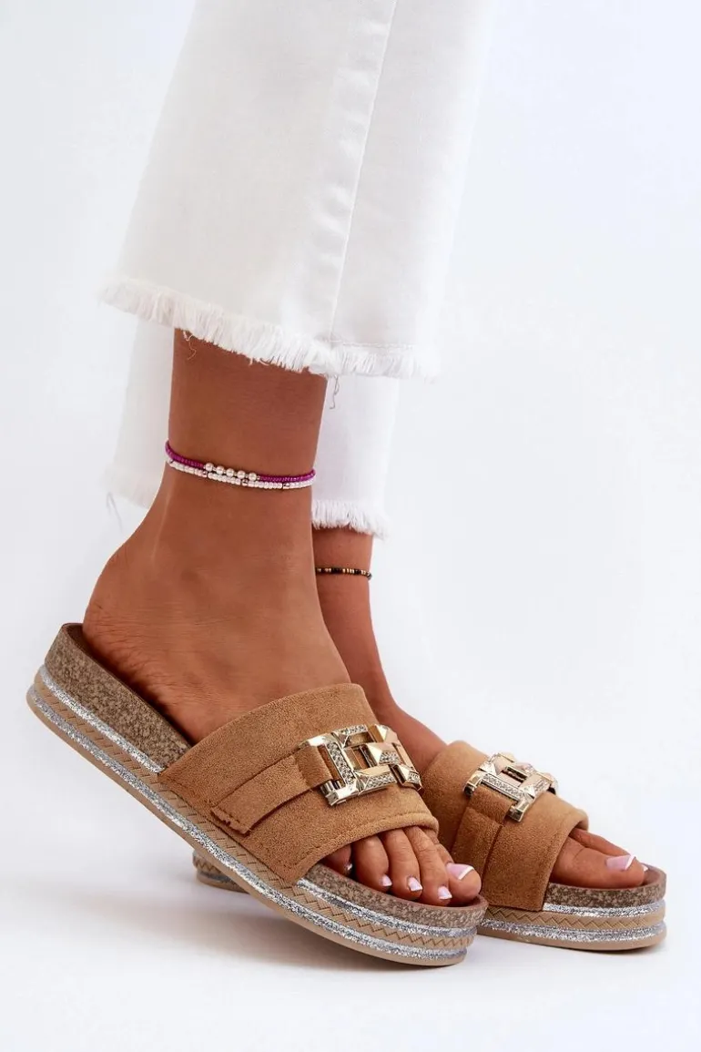 Damskie Klapki Na Platformie Z Ozdobą Camel Vapireta