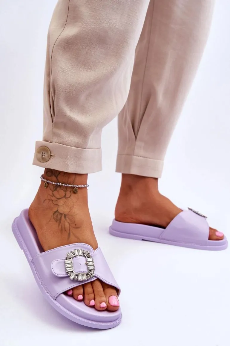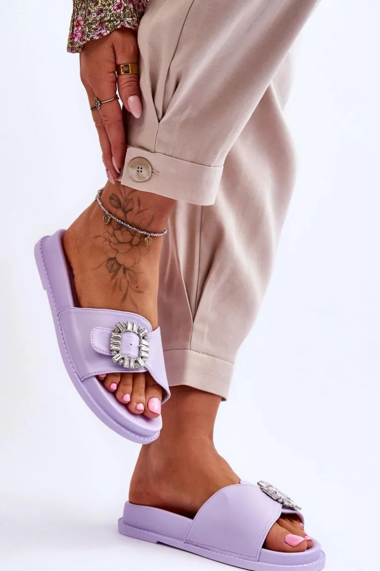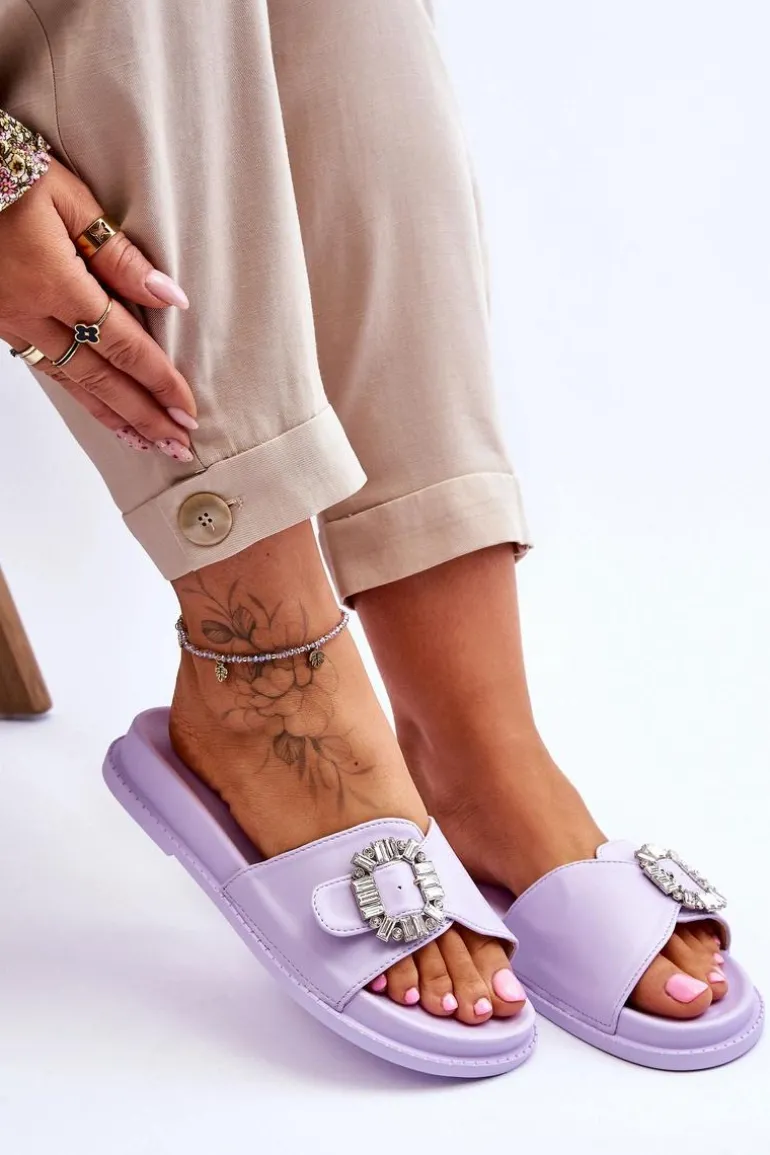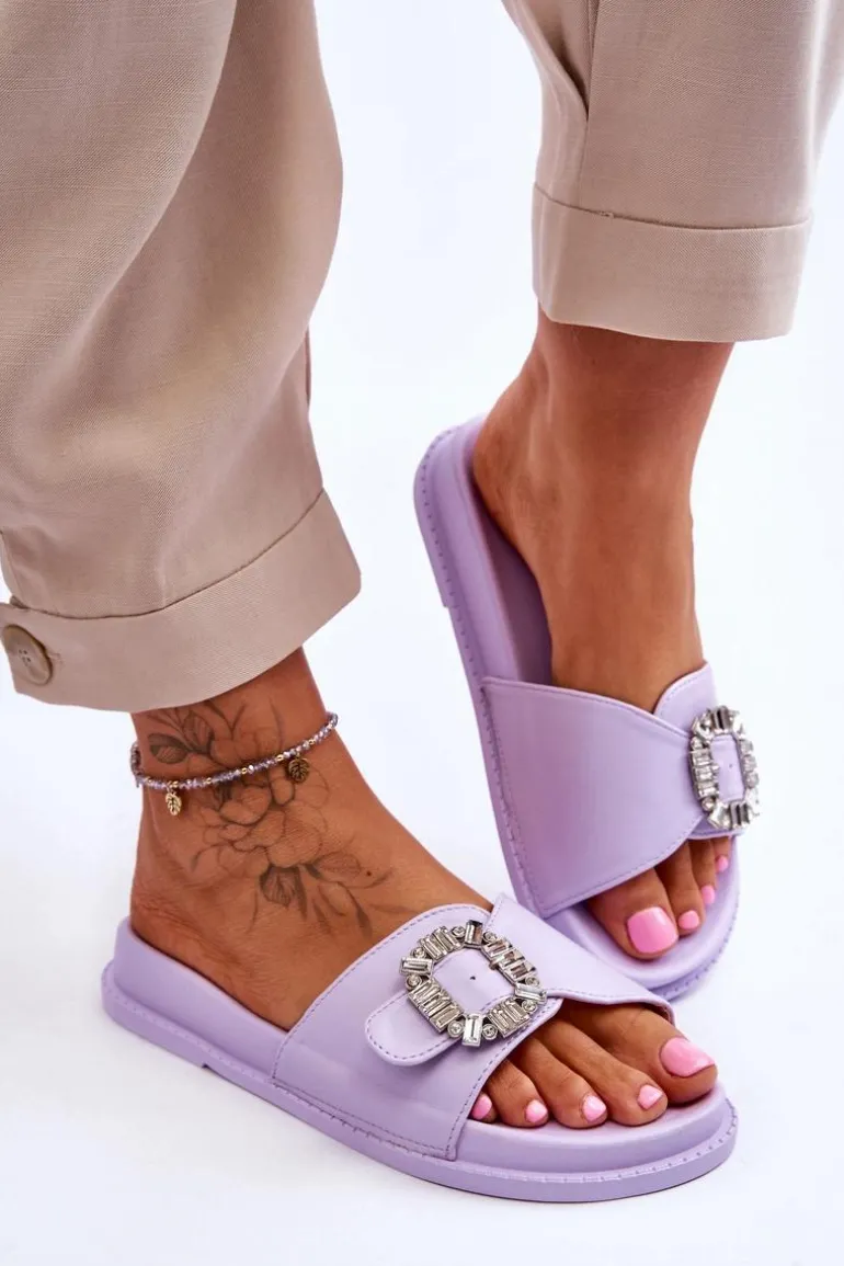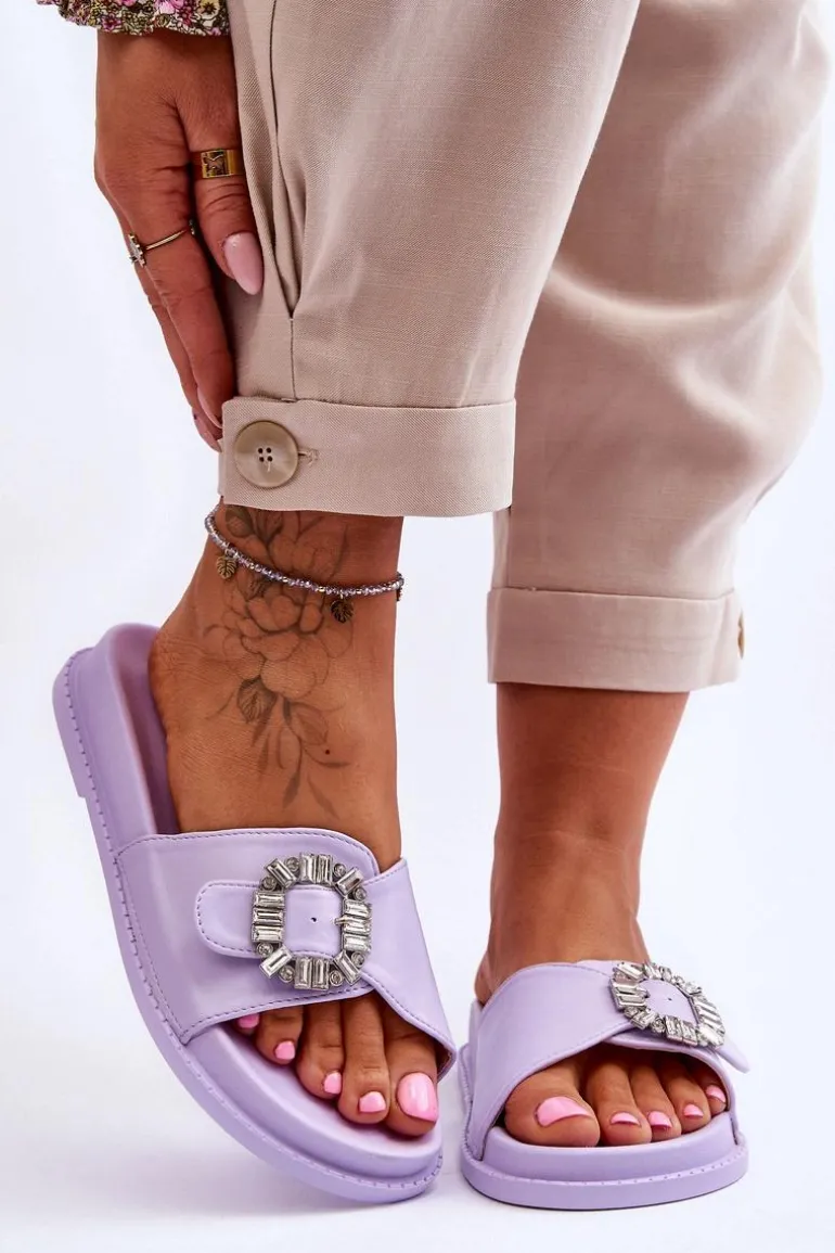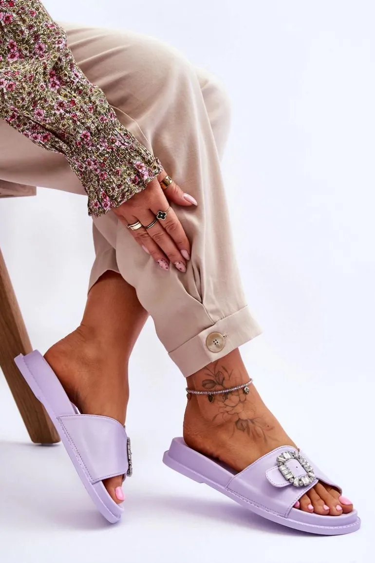 Klapki damskie zostały wykonane z eko skóry. Model ten posiada pasek zapinany na sprzączkę, który można regulować. Ozdobna klamra dodaje elegancji. Klapki są idealne na letnie spacery oraz codzienne wyjścia na zakupy. Wkładka wraz z podeszwą zostały wykonane z tworzywa sztucznego. Przy wyborze rozmiaru prosimy sugerować się tabelą rozmiarów.