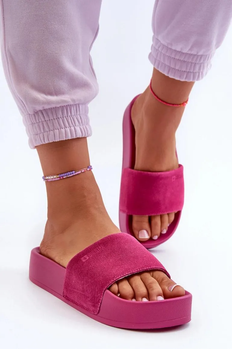Klapki damskie Big Star to połączenie wygody i stylu. Wysoka platforma i szeroki, zamszowy pasek zapewniają stabilność i wygodę podczas noszenia. Idealne na letnie spacery czy wieczorne wyjścia ze znajomymi! Przy wyborze rozmiaru prosimy sugerować się tabelą rozmiarów.