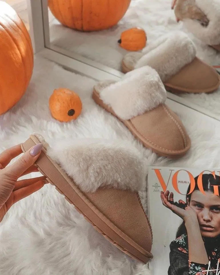 Damskie Klapki Papcie Beżowe Mirendy
