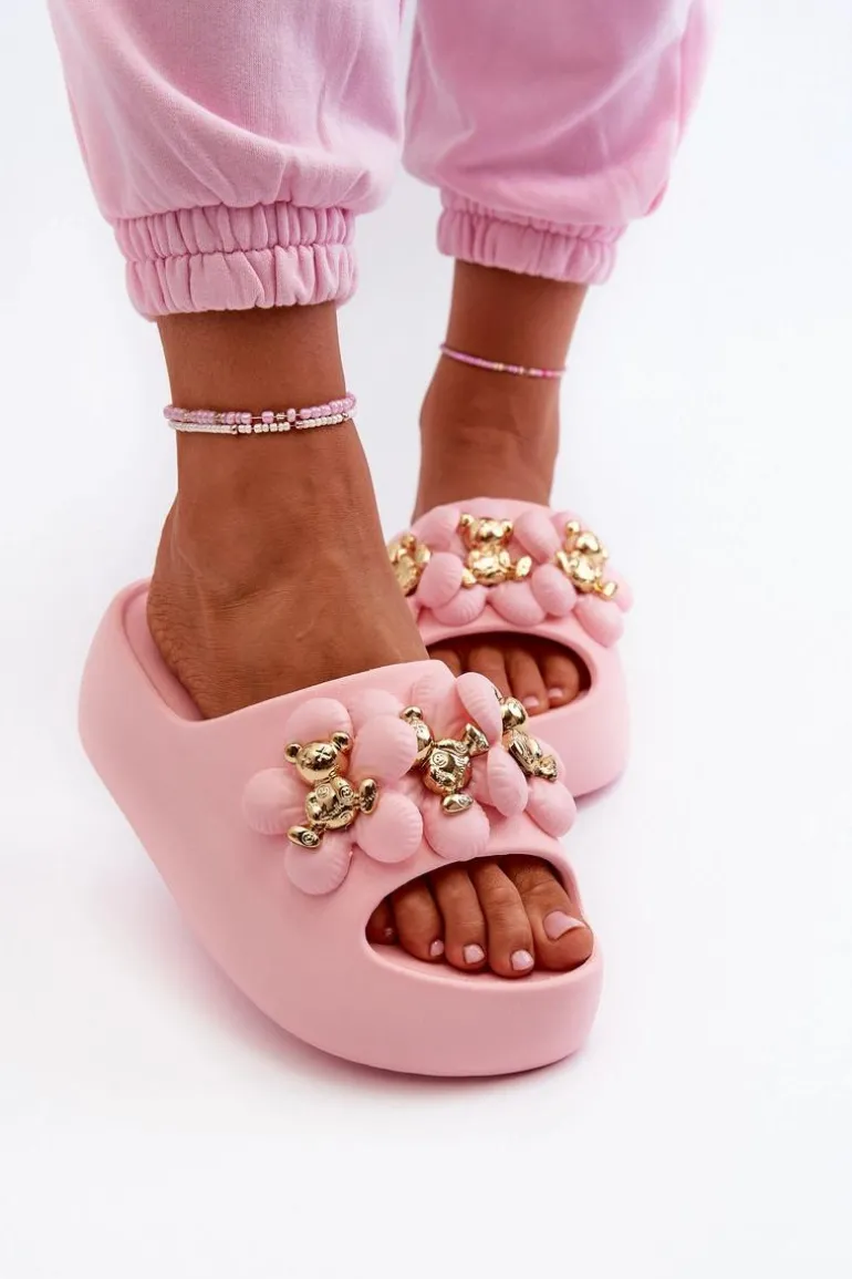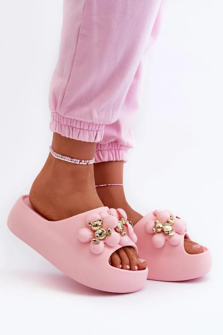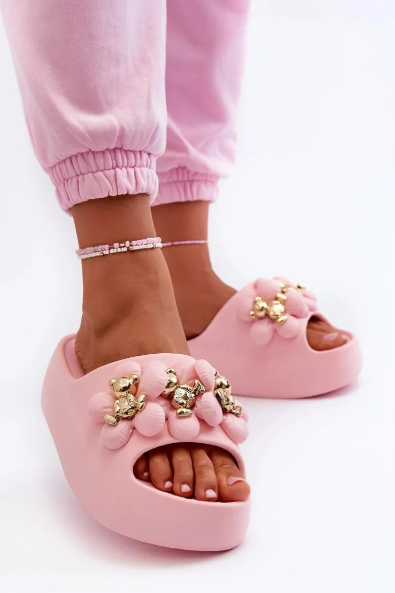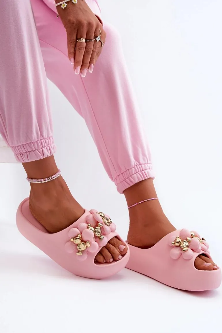 Damskie Klapki Piankowe Z Ozdobami Na Grubej Podeszwie Różowe Bremavia
