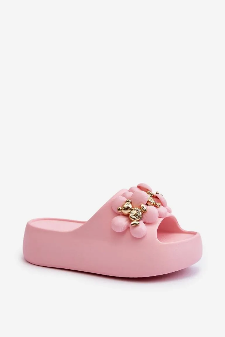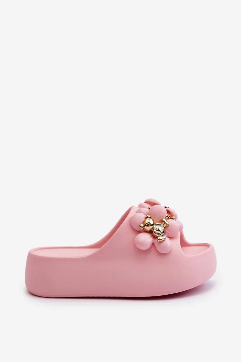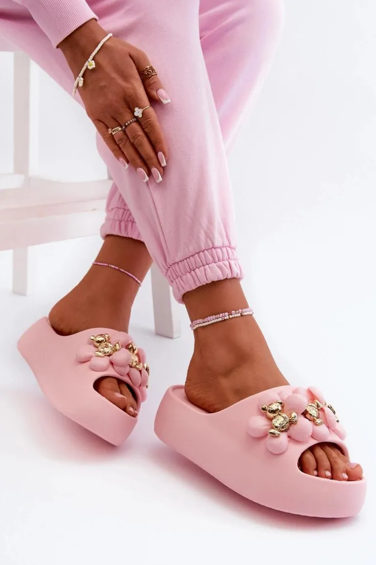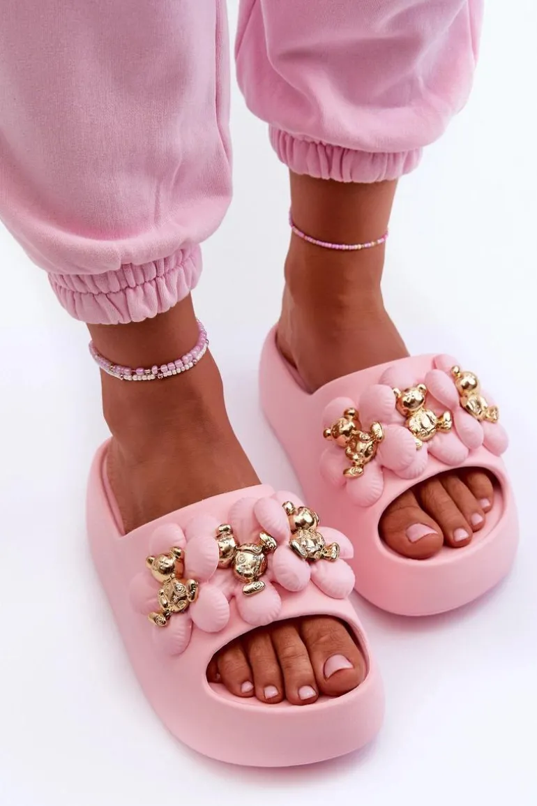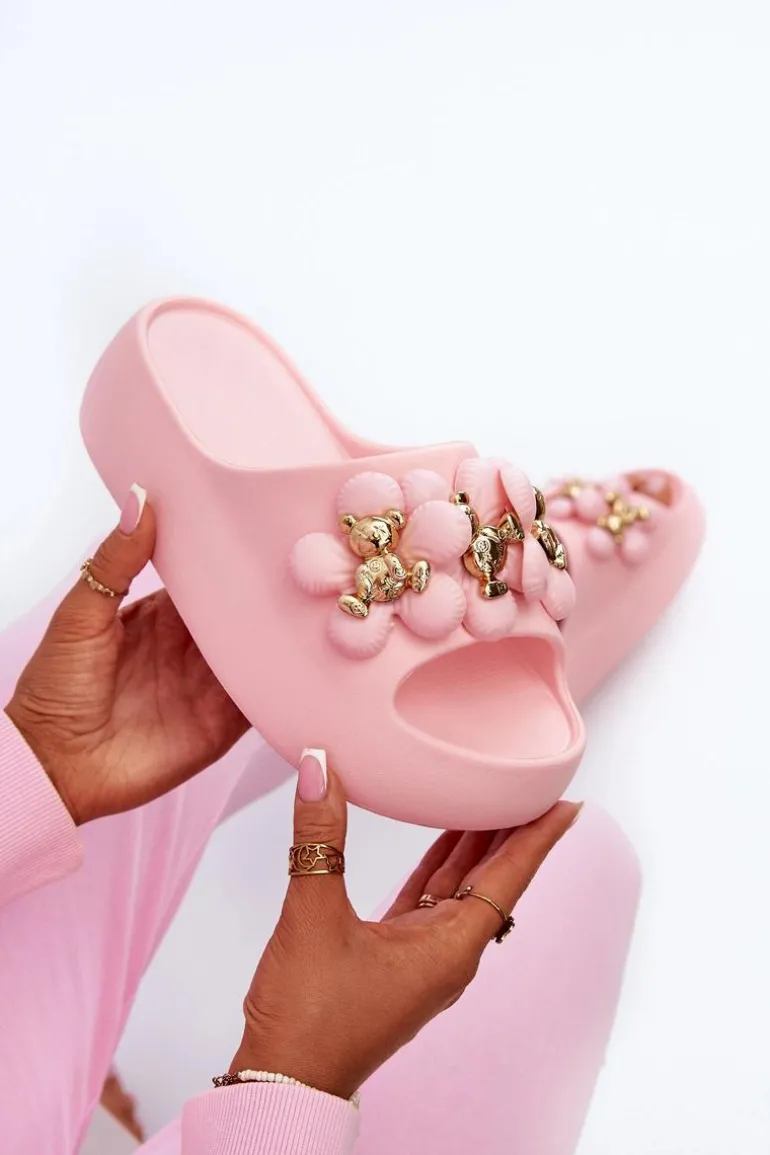 Damskie Klapki Piankowe Z Ozdobami Na Grubej Podeszwie Różowe Bremavia