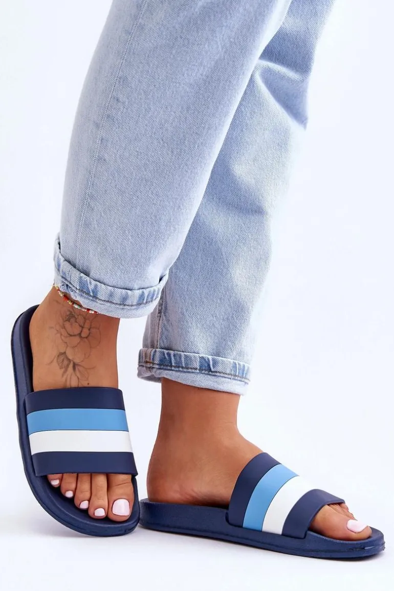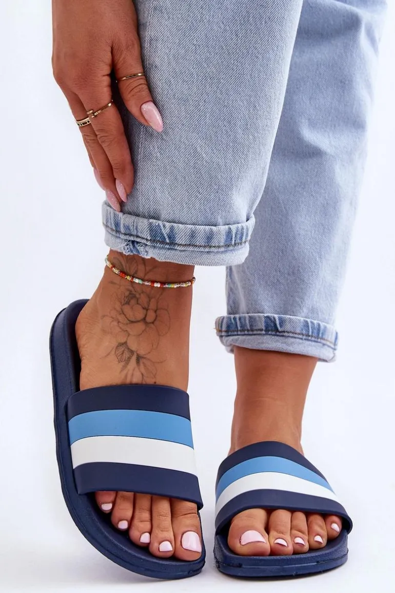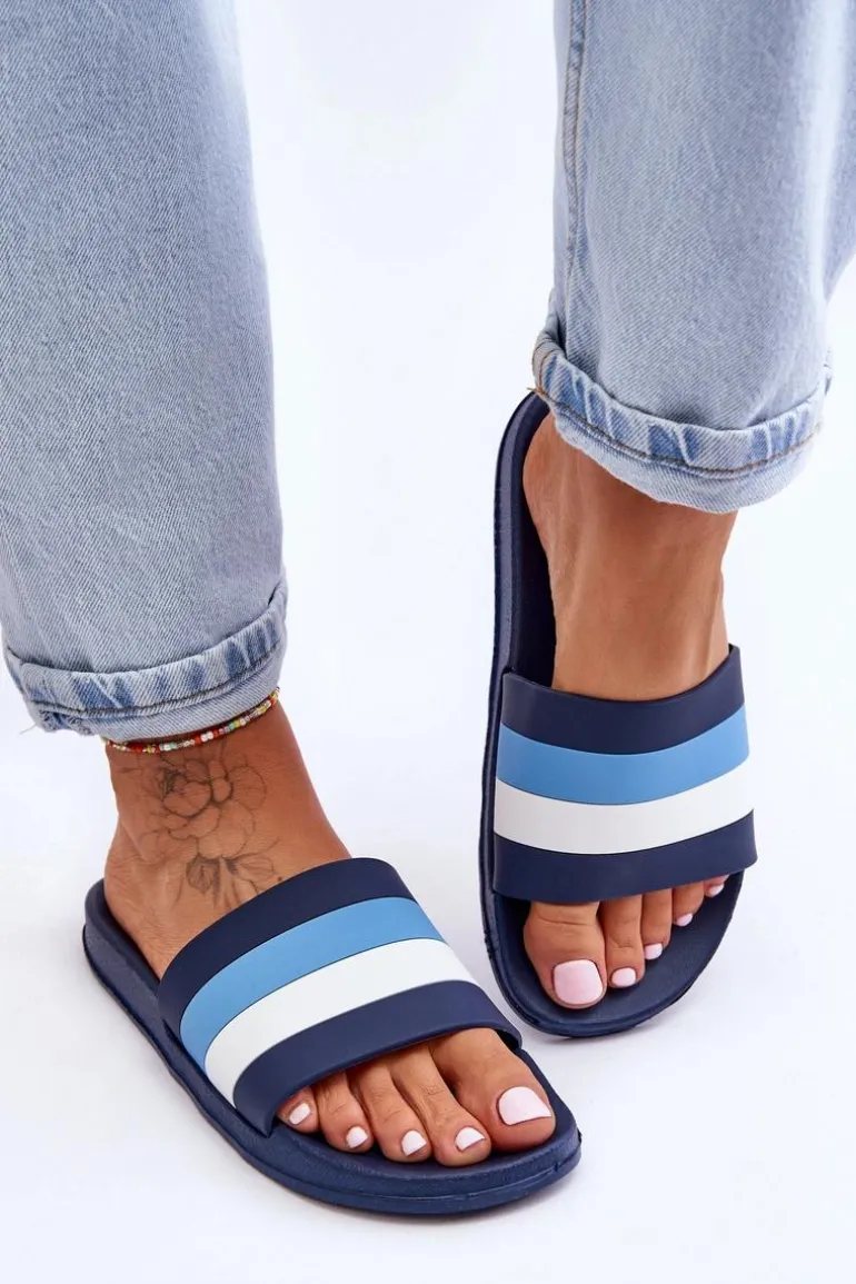 Damskie Klapki W Paski Granatowe Vision