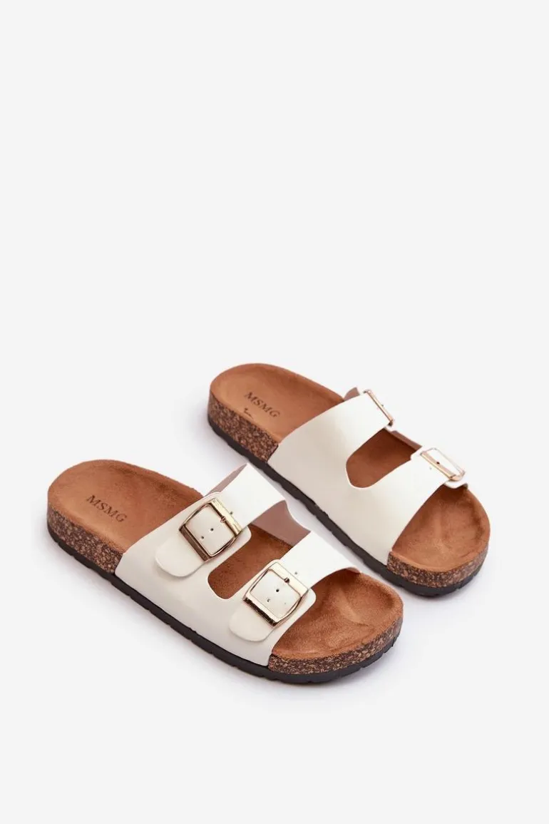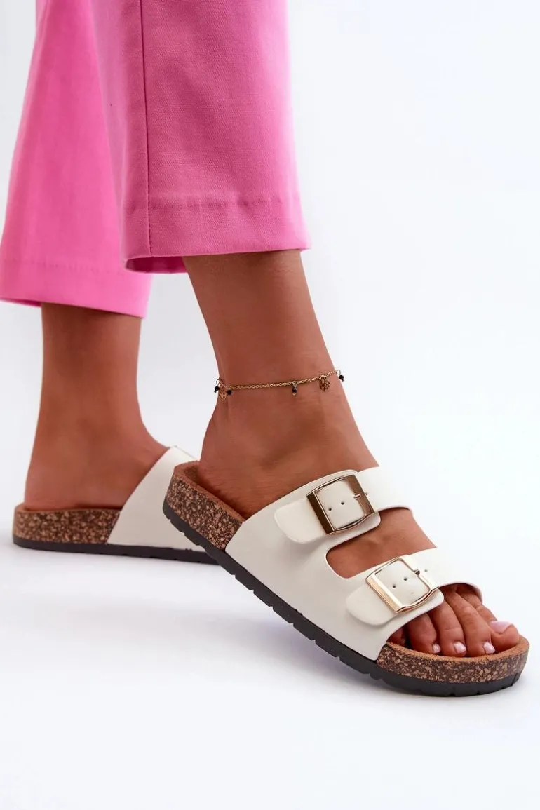 Damskie Klapki Wsuwane Na Korkowej Podeszwie Białe Cortina