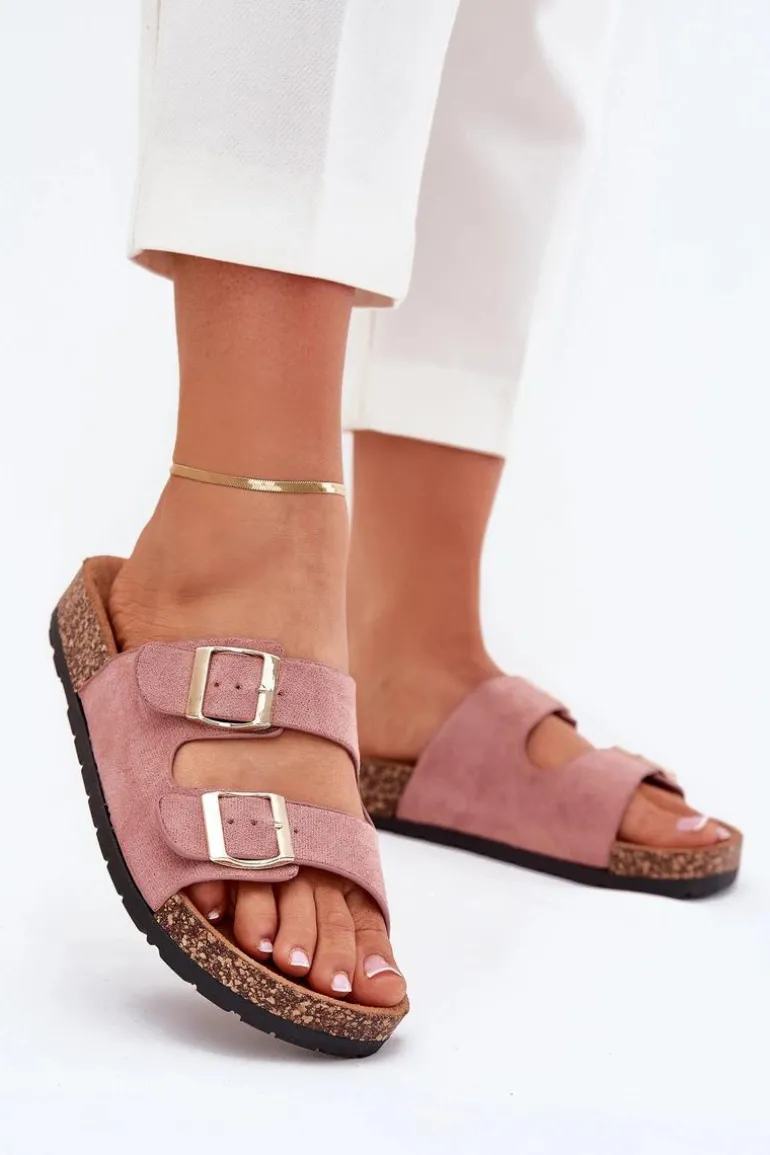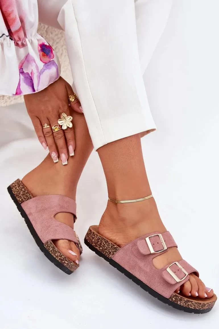 Damskie Klapki Wsuwane Na Korkowej Podeszwie Jasnoróżowe Cortina