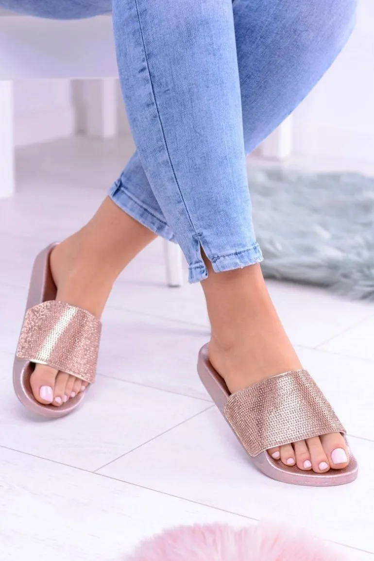 Damskie Klapki Z Cyrkoniami LadyCristal Różowe Złoto