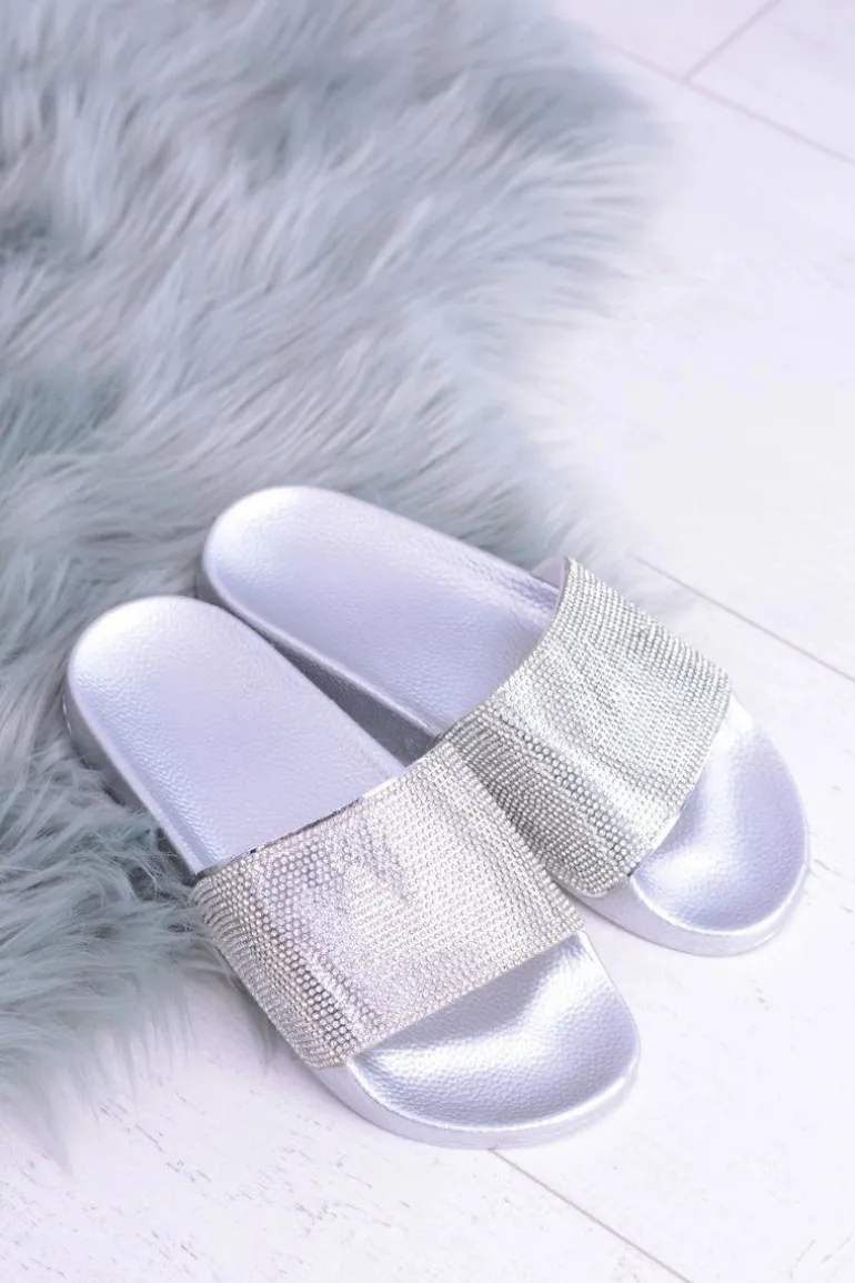 Damskie Klapki Z Cyrkoniami LadyCristal Srebrne