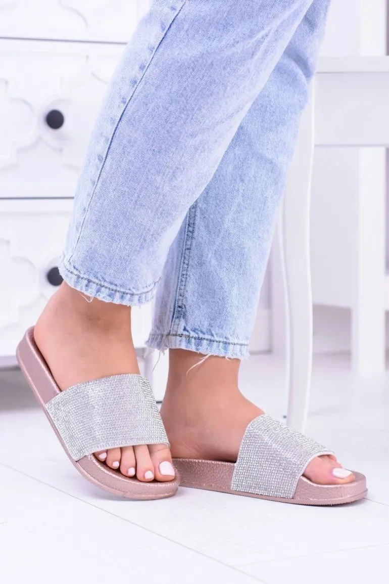 Damskie Klapki Z Cyrkoniami MadameCristal Różowe