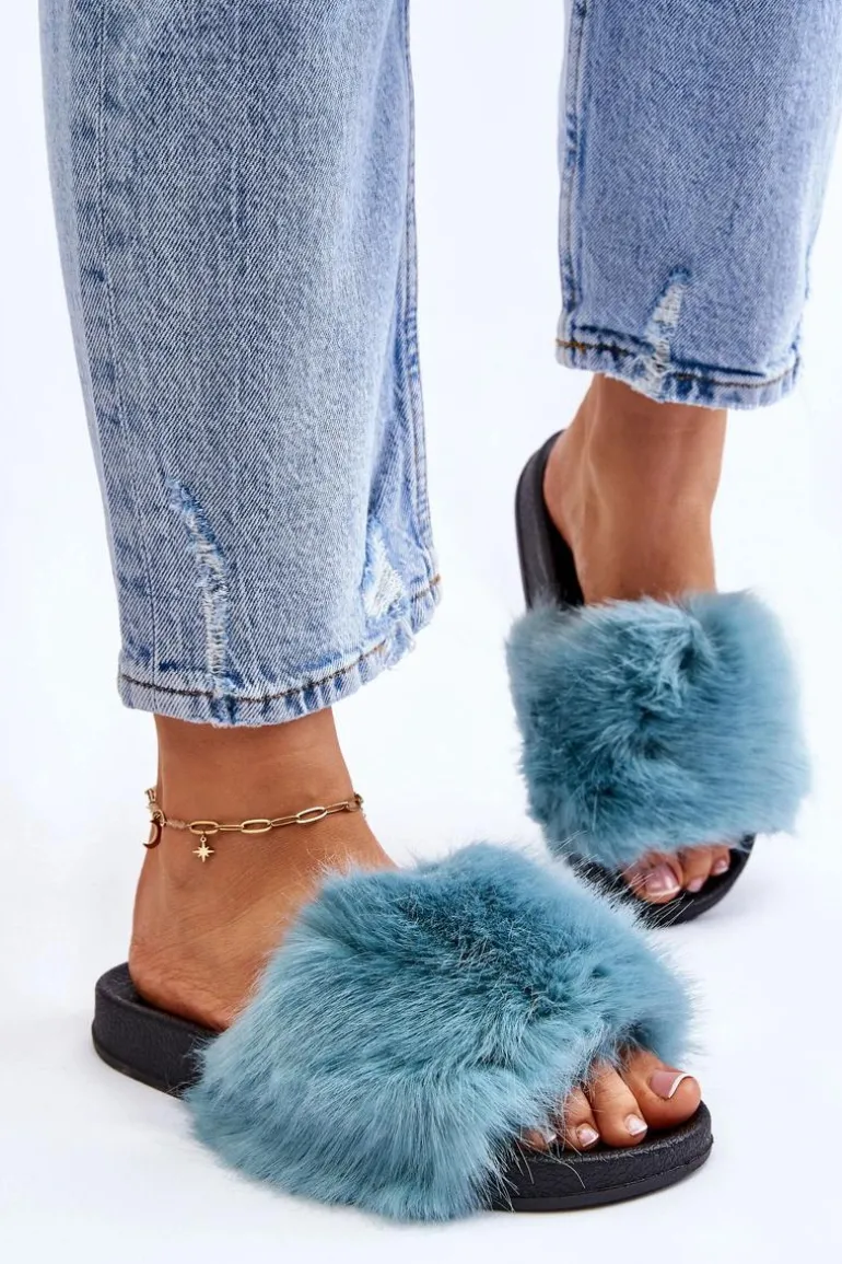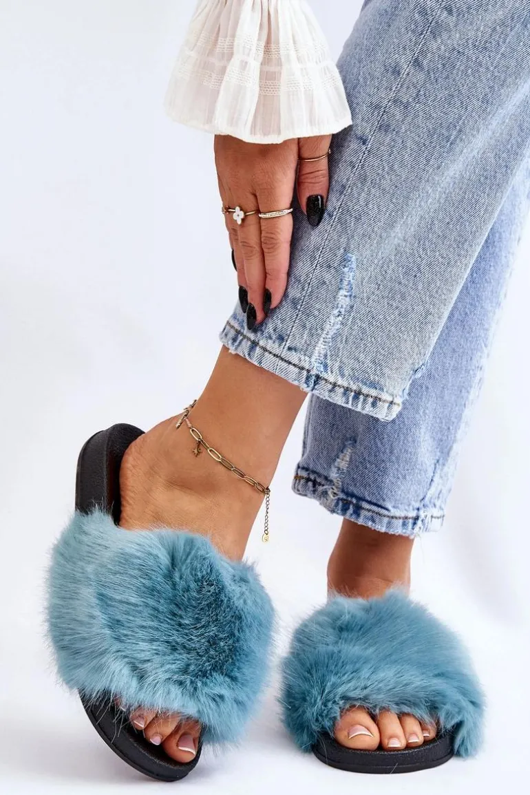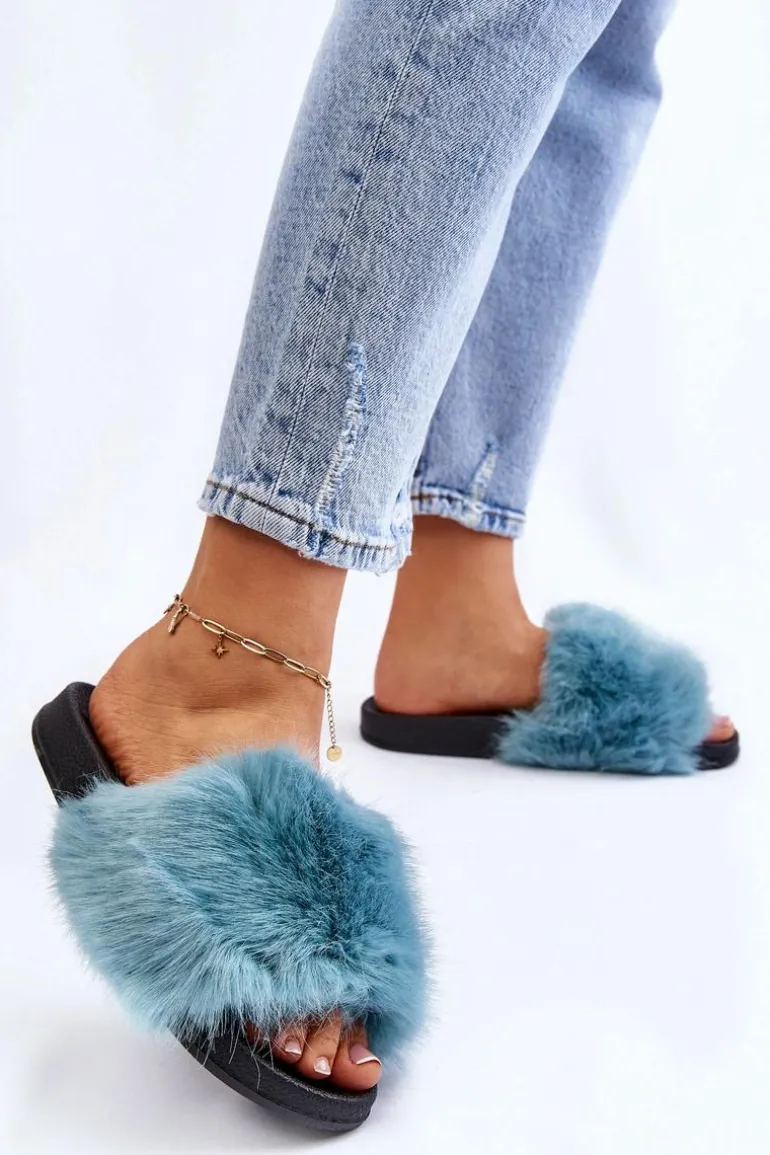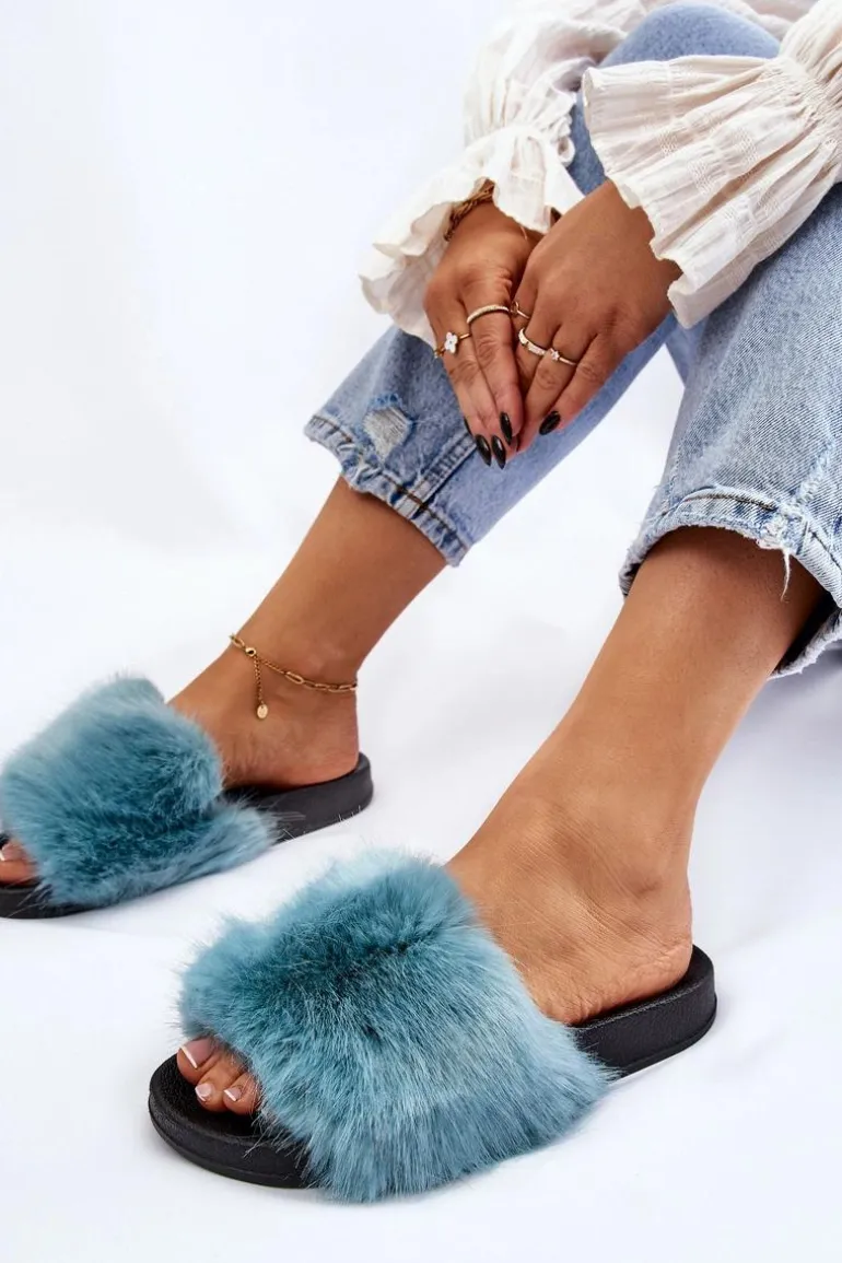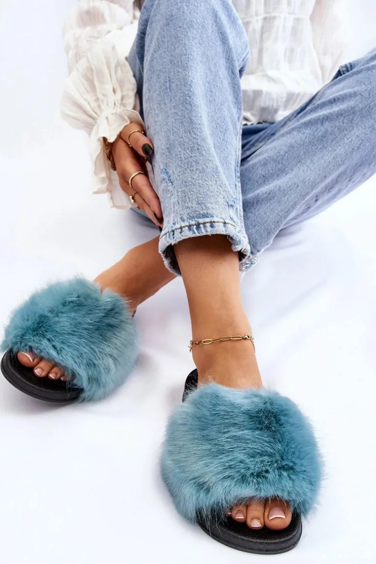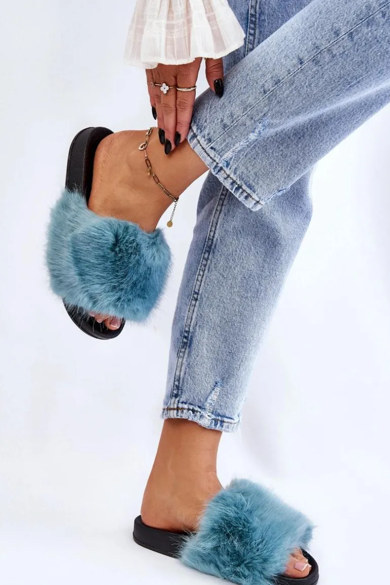 Damskie Klapki Z Futerkiem Turkusowe Kennet