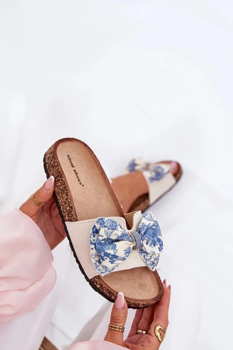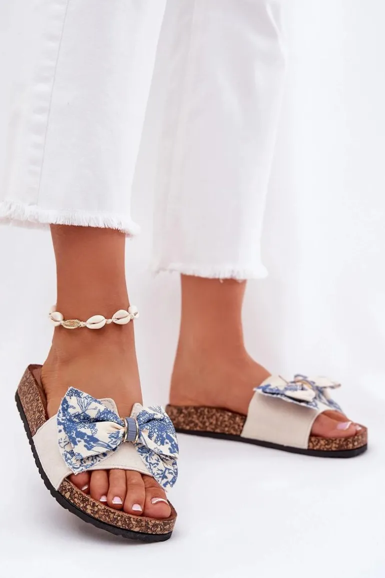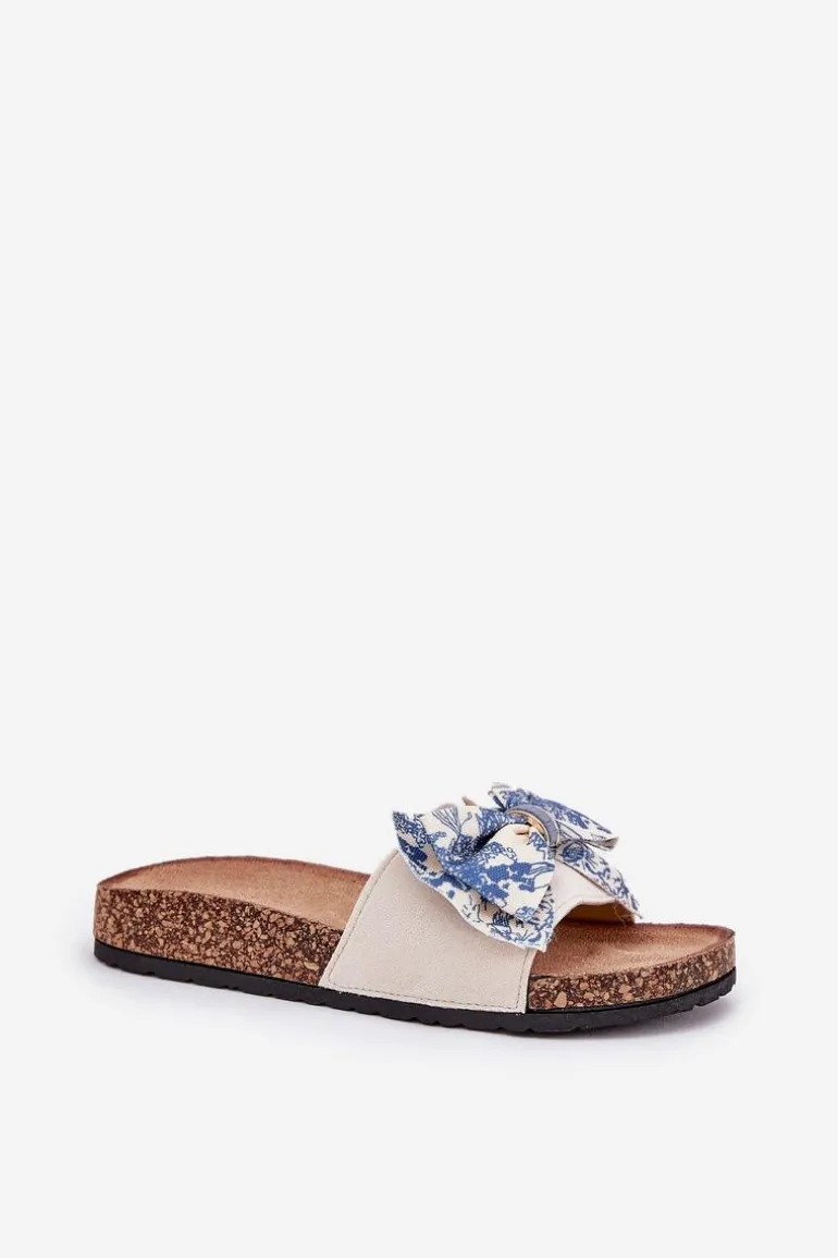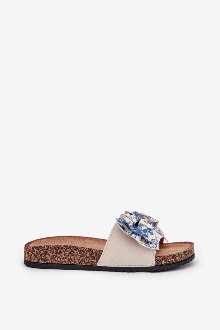 Stylowe klapki z korkową podeszwą charakteryzują się profilowaną wkładką. Wykonane z eko zamszu i materiału tekstylnego. Przód zdobi kokarda. Klapki są uniwersalne i doskonale nadają się do codziennych aktywności, pracy czy zakupów. To idealny wybór na letnie dni! Przy wyborze rozmiaru prosimy sugerować się tabelą rozmiarów.