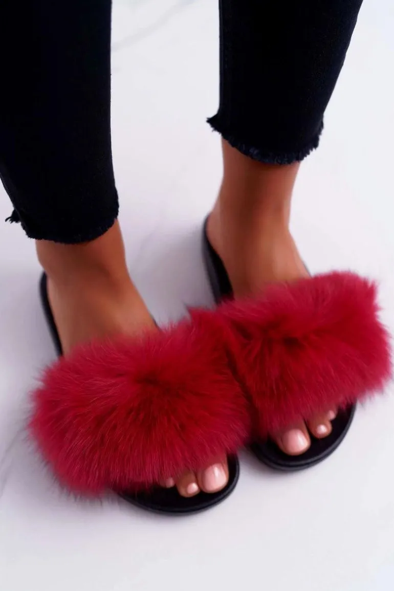 Klapki damskie z naturalnym futerkiem. Podeszwa wykonana jest z gumowego, lekkiego tworzywa. Delikatnie profilowana wkładka zadba o Twój komfort.