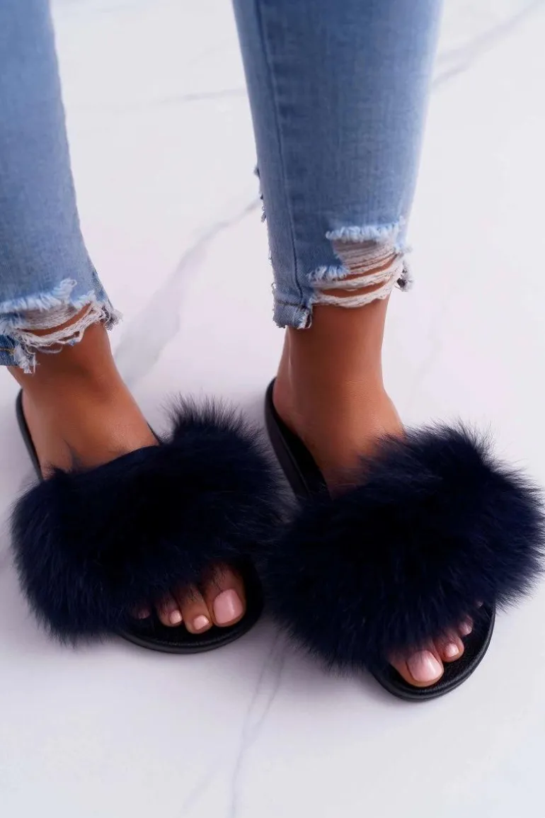Klapki damskie z naturalnym futerkiem. Podeszwa wykonana jest z gumowego, lekkiego tworzywa. Delikatnie profilowana wkładka zadba o Twój komfort.
