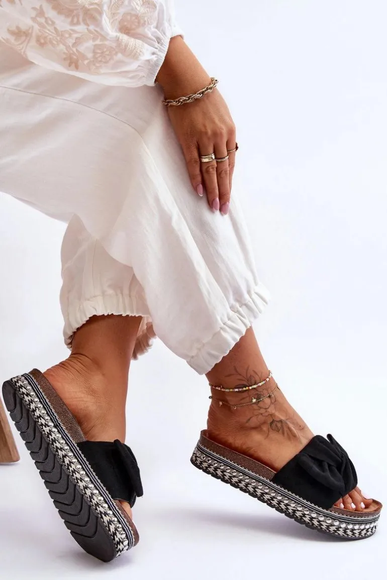 Damskie Klapki Zamszowe Z Kokardą Czarne Lauria