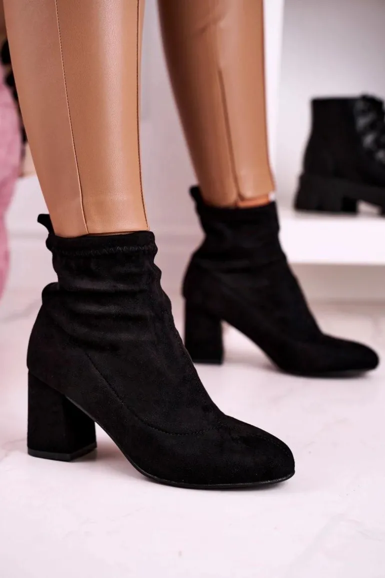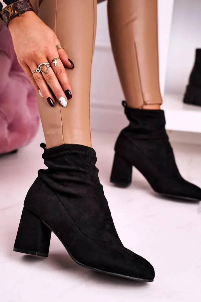 Damskie Klasyczne Botki Na Słupku Zamszowe Czarne Ring