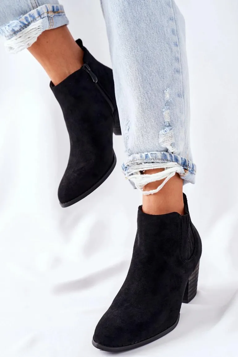 Przedstawiamy wygodne i stylowe botki na słupku. Wykonane z ekologicznego zamszu. Posiadają zapinanie na zamek z boku cholewki. Przy wyborze rozmiaru prosimy sugerować się tabelą rozmiarów.
