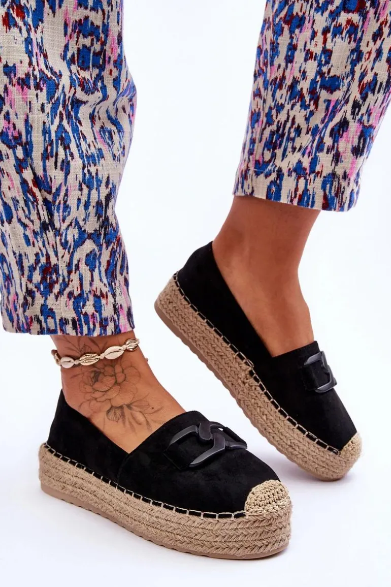 Damskie Klasyczne Espadryle Na Platformie Czarne Maurine