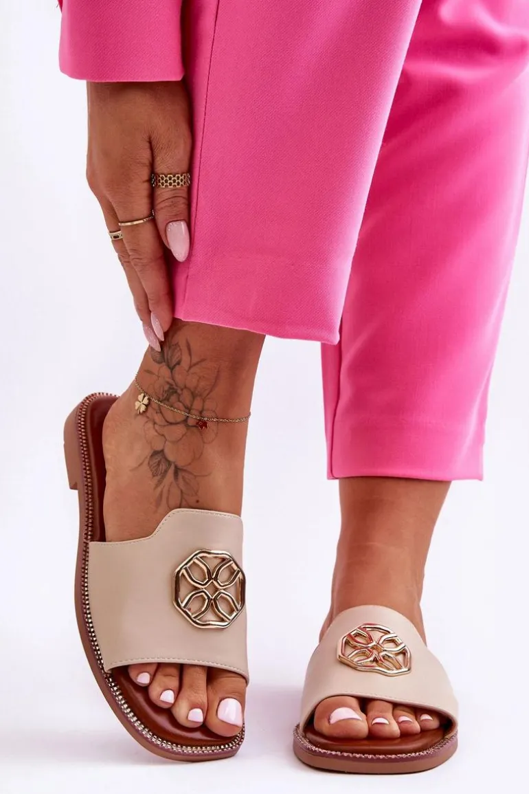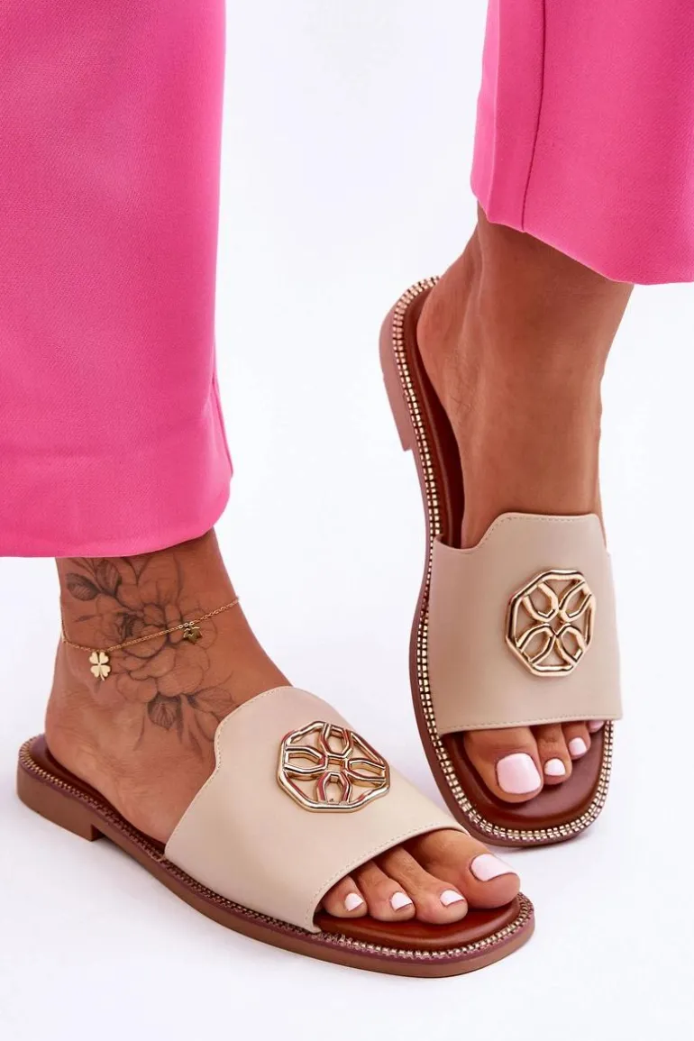 Klasyczne, damskie klapki zostały wykonane z eko skóry. Model ten posiada ozdobę wykonaną z tworzywa sztucznego. Klapki osadzono na delikatnej platformie oraz płaskim obcasie. Wkładka jest niezwykle miękka i wygodna w użytkowaniu. Nosek jest odkryty i lekko kwadratowy. Ten model powinien znaleźć się właśnie w Twojej garderobie! Przy wyborze rozmiaru prosimy sugerować się tabelą rozmiarów.