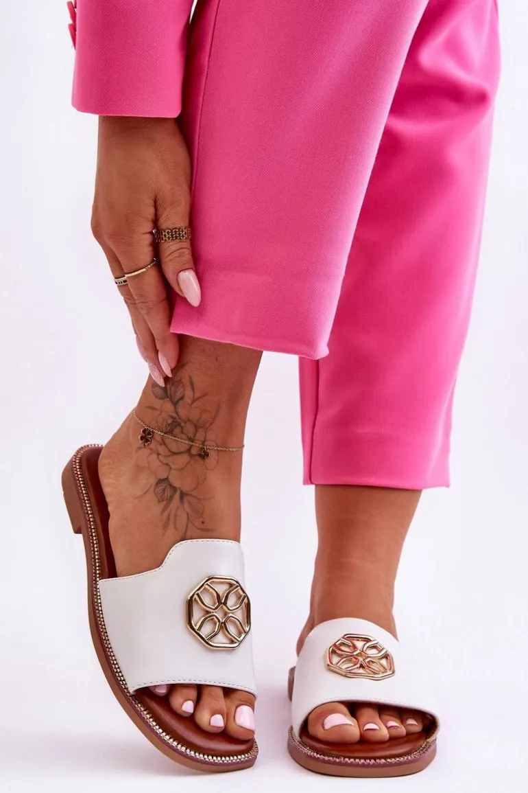 Damskie Klasyczne Klapki Na Płaskim Obcasie Białe Larotte