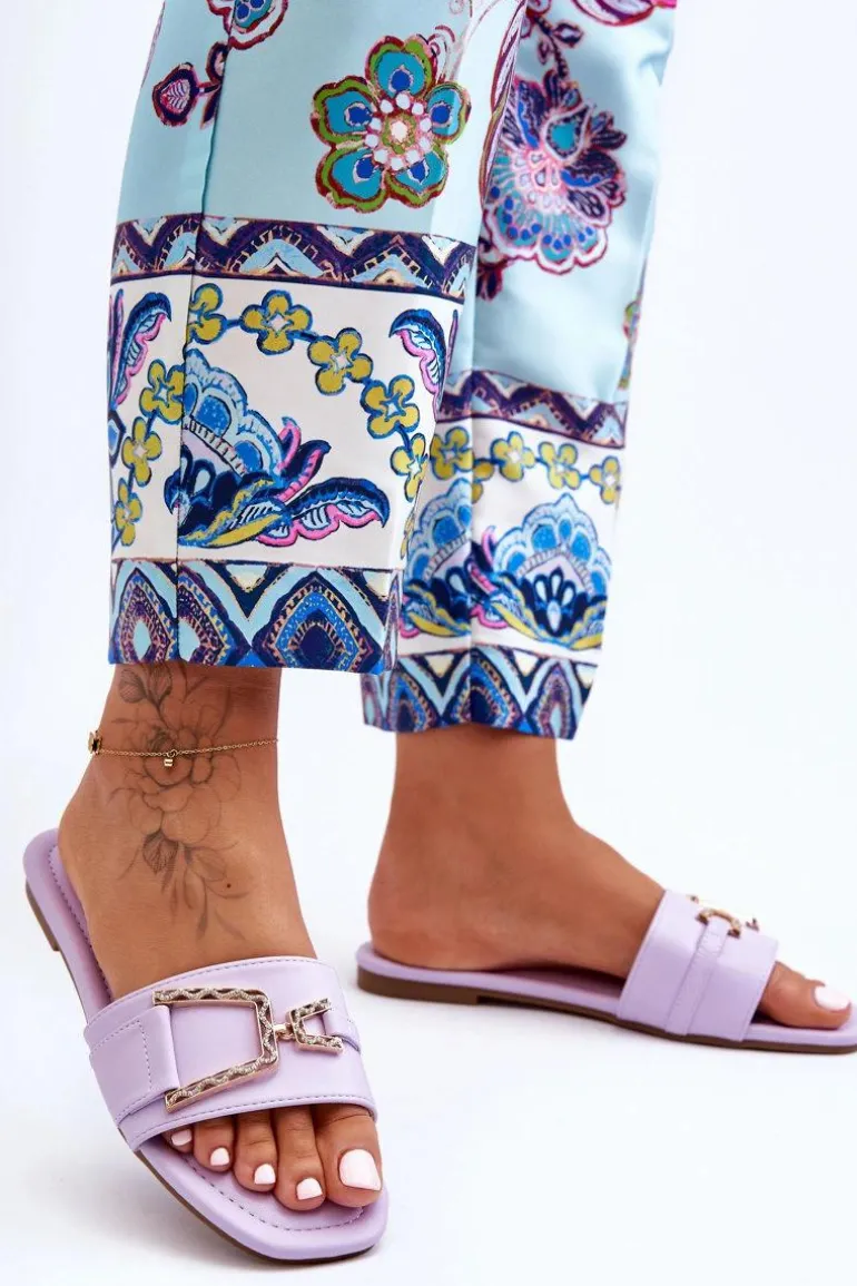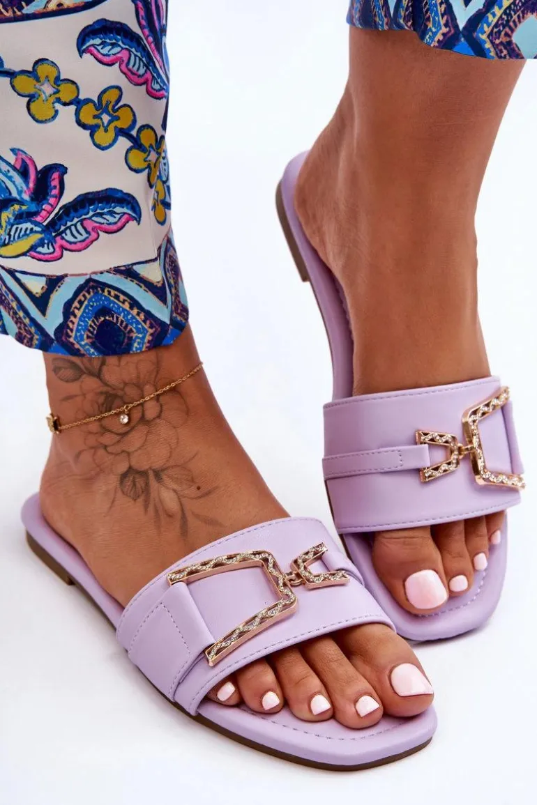 Damskie klapki zostały wykonane z eko skóry. Posiadają na przodzie ozdobę z tworzywa sztucznego z dżetami imitującymi cyrkonie. Klapki osadzono na delikatnym, płaskim obcasie. Wkładka jest wygodna w użytkowaniu i została wykonana z eko skóry. Nosek w tym obuwiu jest odkryty i lekko kwadratowy. Ten model powinien być Twój! Przy wyborze rozmiaru prosimy sugerować się tabelą rozmiarów.