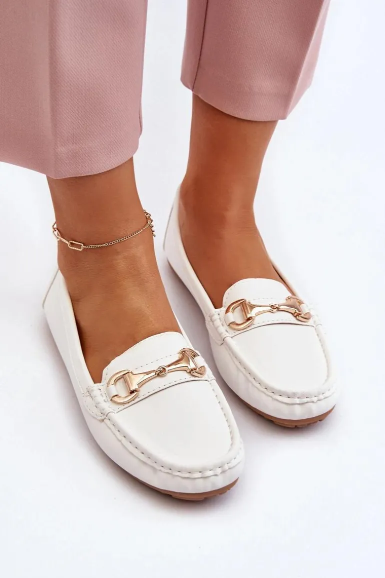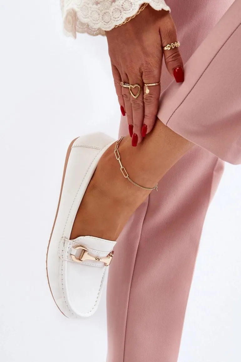 Damskie Klasyczne Mokasyny Eko Skórzane Białe Demese