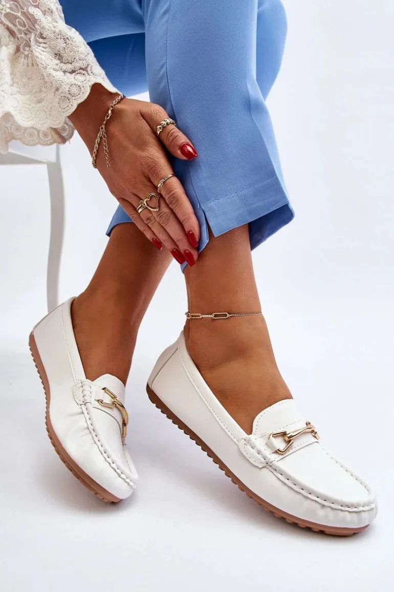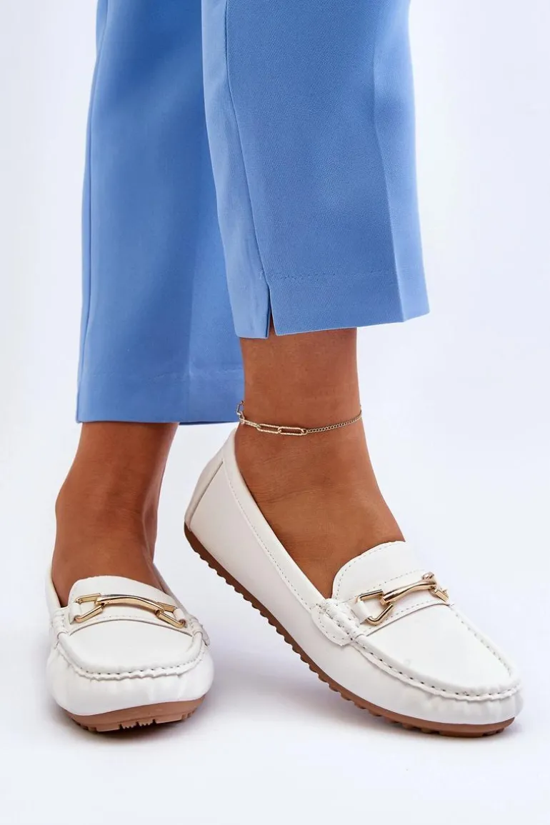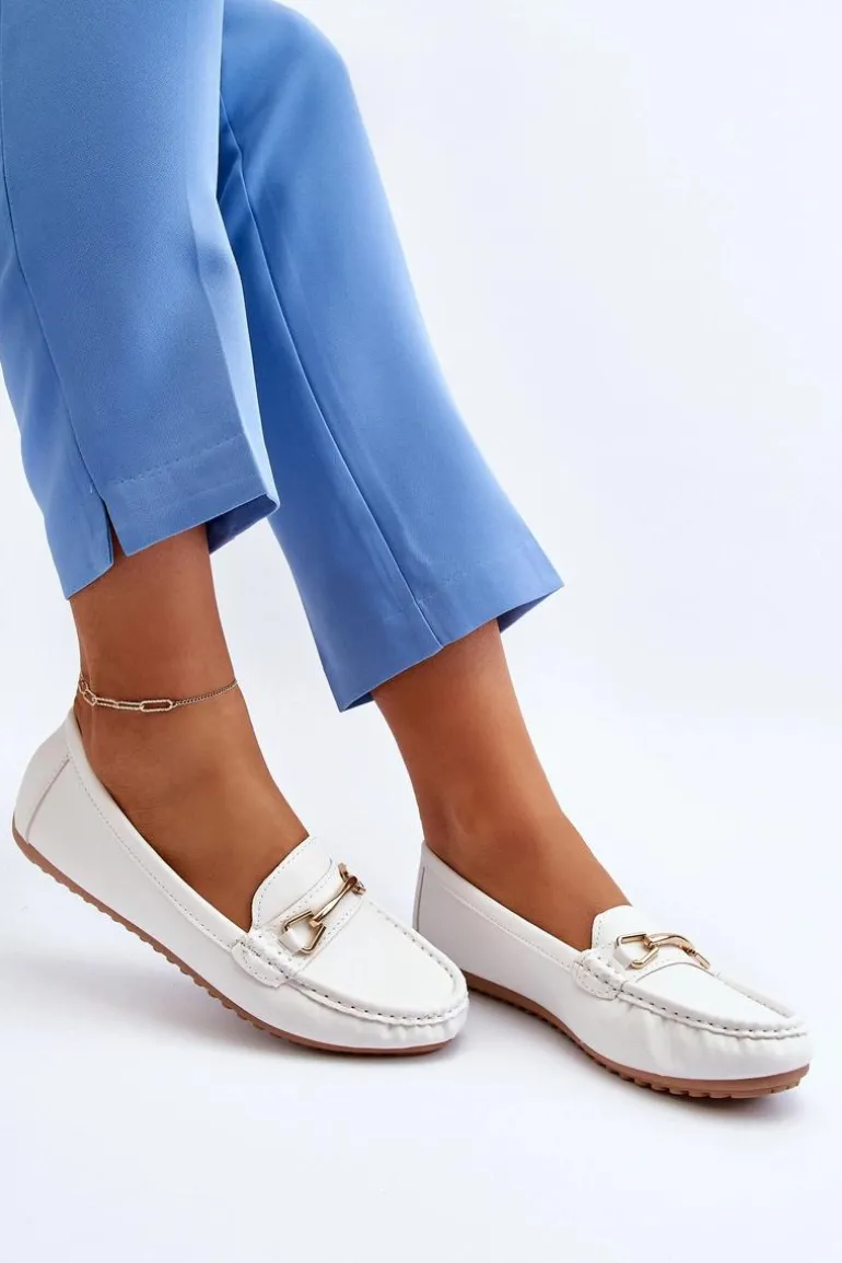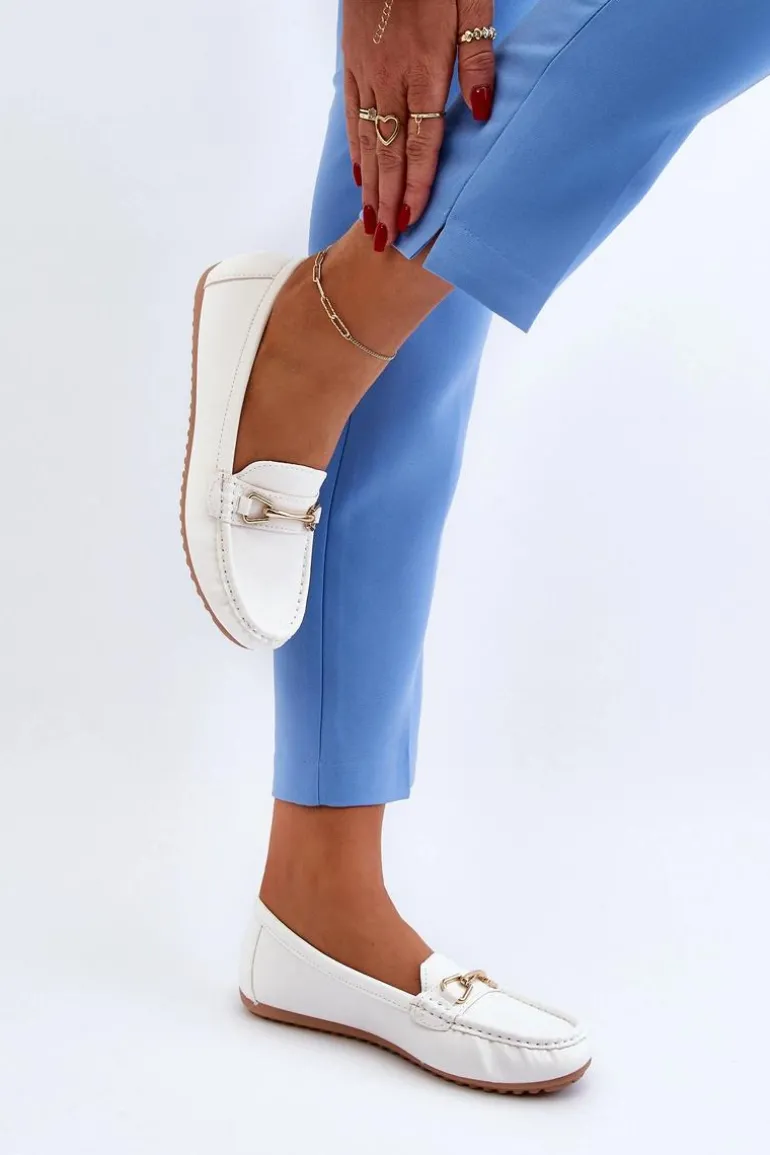 Mokasyny damskie to obuwie, które powinno znaleźć się w szafie każdej kobiety. Wykonane z eko skóry. Przód ozdobiony paseczkiem ze złotą ozdobą. Zaokrąglone noski dodają im subtelnego uroku. Ten klasyczny fason z pewnością dopełni wiele wiosenno-letnich stylizacji! Przy wyborze rozmiaru prosimy sugerować się tabelą rozmiarów.