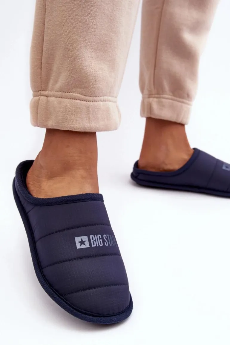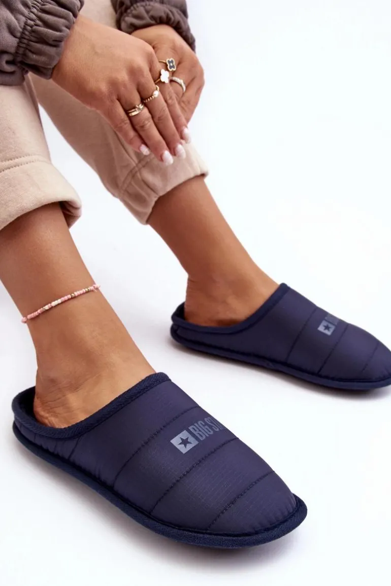 Damskie, wsuwane papcie z szerszym noskiem zapewnią wygodę podczas użytkowania. Papcie wykonane z materiału tekstylnego z przeszyciami. Na wierzchu znajduje się logo marki Big Star. Papcie zostały ocieplone w środku miękkim kocem obuwniczym. Osadzone na podeszwie wykonanej z gumowego tworzywa, która świetnie odizoluje od zimnego podłoża. Przy wyborze rozmiaru prosimy kierować tabelą rozmiarów.