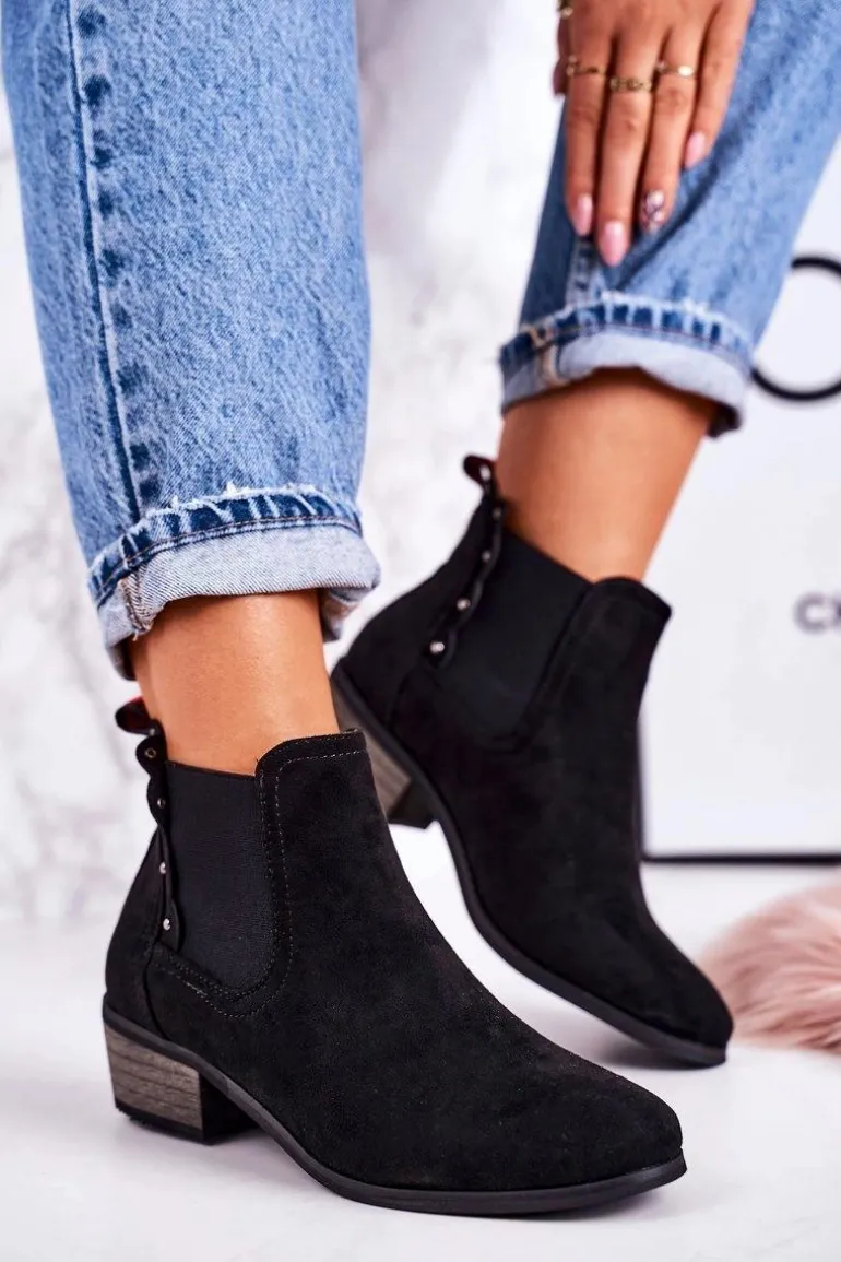 Damskie Klasyczne Sztyblety Botki Zamszowe Czarne Walker