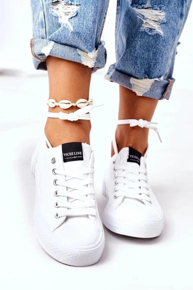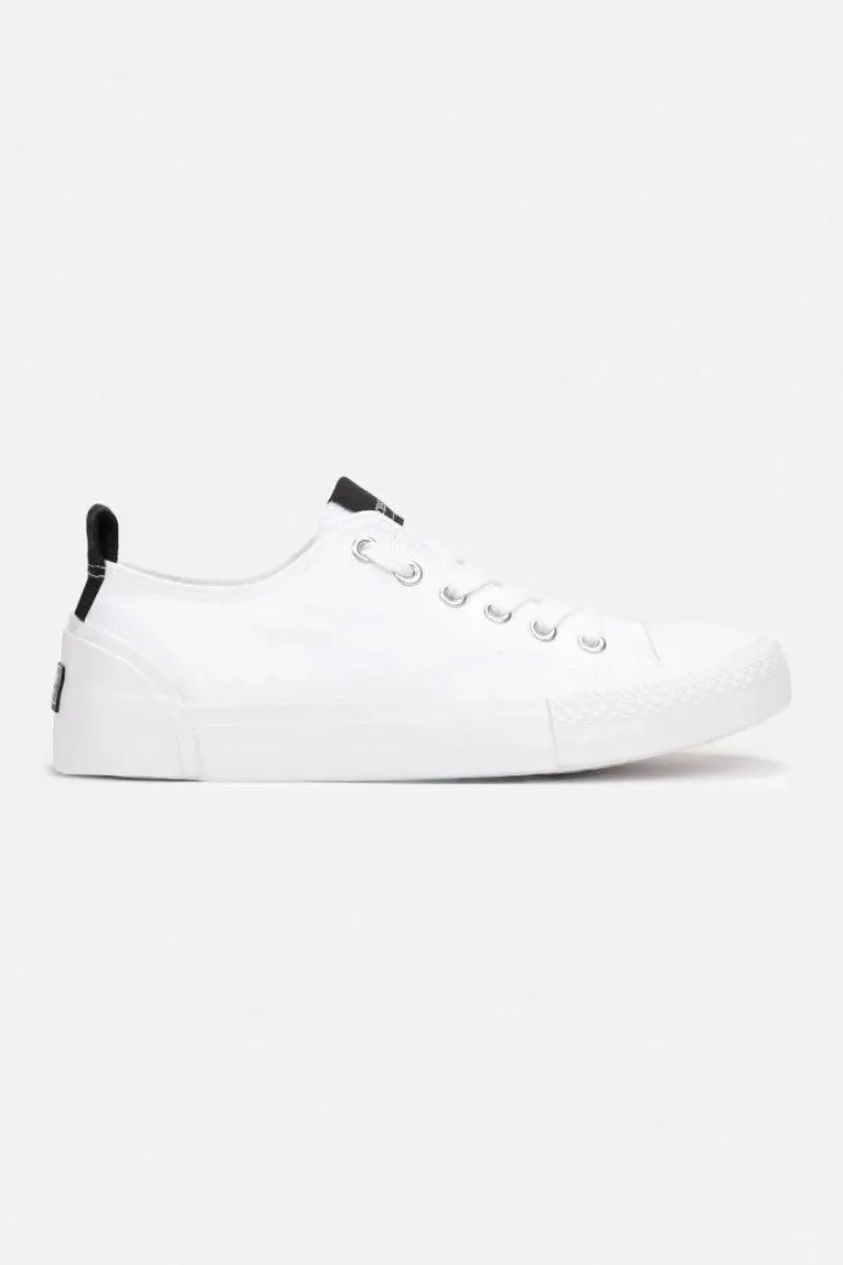 Klasyczne trampki damskie. Buty posiadają gumową podeszwę oraz miękką cholewkę. Koniecznie sprawdź całą naszą kolekcję trampek damskich! Przy wyborze rozmiaru prosimy sugerować się tabelą rozmiarów.