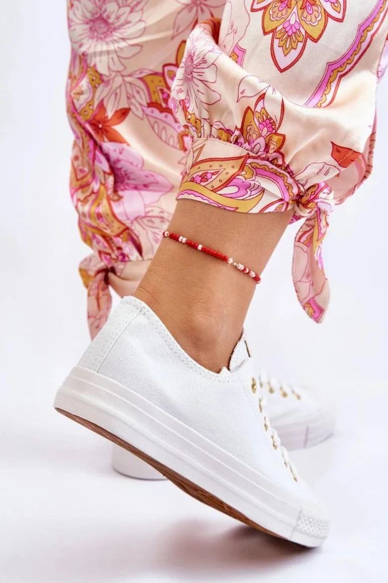 Klasyczne trampki damskie. Buty posiadają gumową, antypoślizgową podeszwę oraz miękką cholewkę. Ponadczasowy model, dostępny w wielu pięknych kolorach! Klasyczny, wiązany model. Buty posiadają wzmocnienie na nosku w postaci gumowego tworzywa. Przy wyborze rozmiaru prosimy sugerować się tabelą rozmiarów.